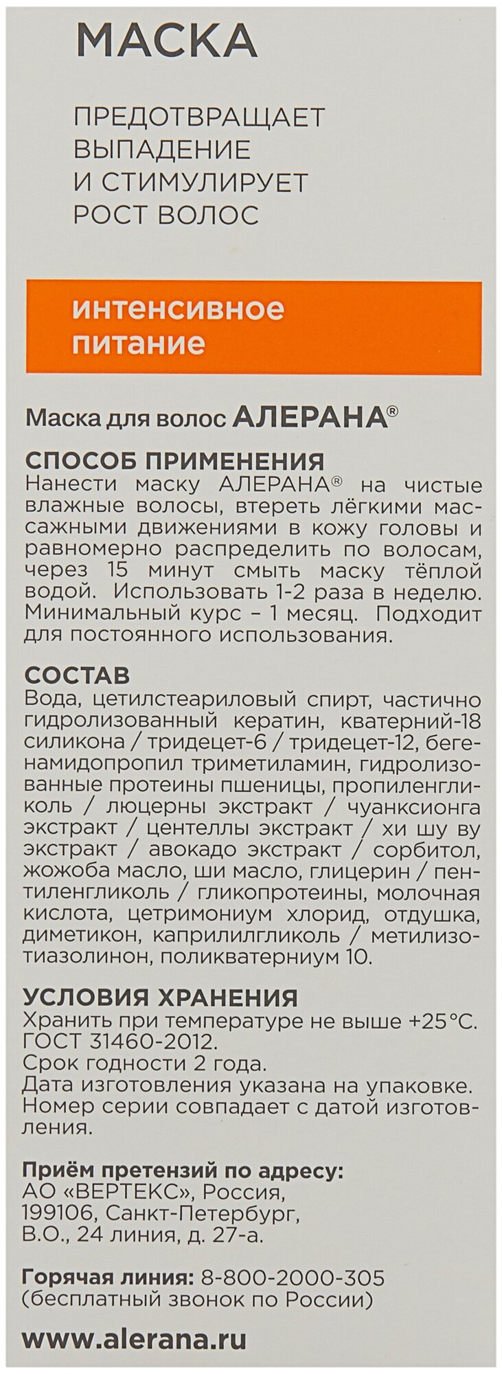 Маска Alerana (Алерана) Интенсивное питание для волос 150 мл Вертекс АО (687991)