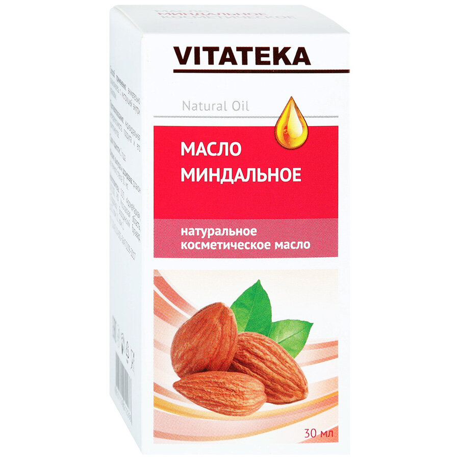 Косметическое масло Vitateka Миндальное с витаминно-антиоксидантным комплексом 30 мл. Натуральное миндальное масло (Amygdalus communis L. Forta dulcis DC) vitateka получают методом холодного прессования с последующей фильтрацией. Косметическое масло легко проникает в кожу и придает ей мягкость, гладкость и упругость, увлажняет и питает. Уникальное натуральное растительное масло, подходящее для всех типов кожи. Имеет очень легкую текстуру, не создает ощущения тяжести и жирности. Наилучшее базовое масло для чувствительной, очень сухой и обветренной кожи. Прекрасно увлажняет, предотвращает дальнейшую потерю влаги, восстанавливает эластичность и разглаживает кожу. Смягчает и питает, успокаивает раздражение и помогает снять воспаления кожи, нормализует функции сальных желез. Способствует разглаживанию мелких морщинок, выравнивает кожу и улучшает ее цвет. Благодаря высокому содержанию витамина Е, замедляет процессы старения, уменьшает воспалительные процессы, а благодаря витамину F предупреждает расширение пор и нормализует работу сальных желез. Питает волосы, придает им блеск, повышает эластичность