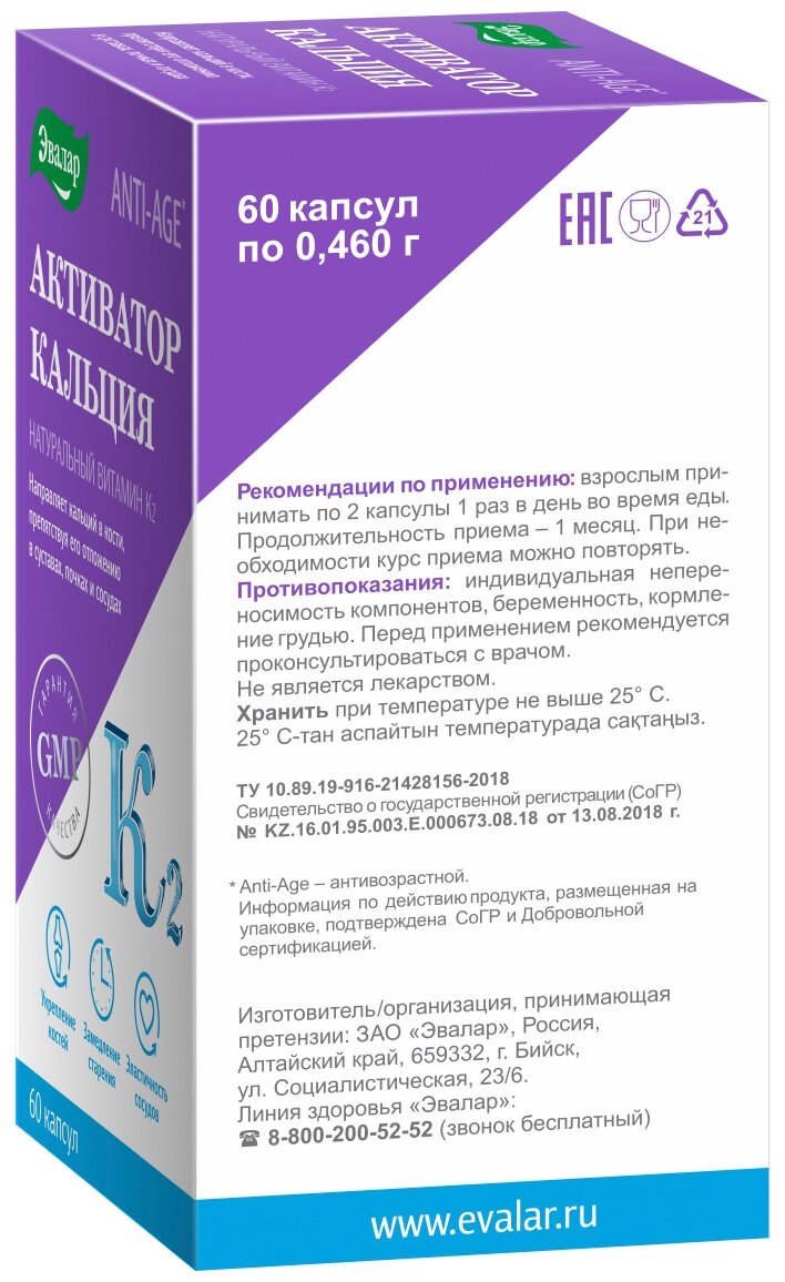 Сведения о составе: кальция фосфат двухосновный безводный, компоненты капсулы пищевые добавки : желатин; диоксид титана, оксиды железа красители ; менахинон-7 витамин К2, холекальциферол витамин D3, целлюлоза микрокристаллическая носитель, стеарат магния агент антислеживающий .