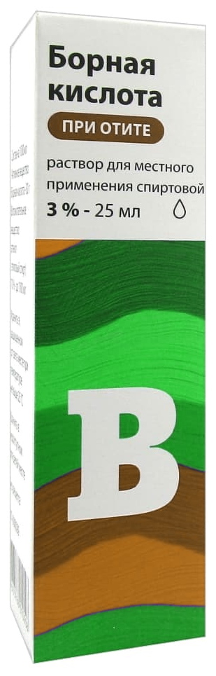 Антисептическое средство для применения в ЛОР-практике, дерматологии, офтальмологии.Контрацепция (в комбинации с оксихинолина сульфатом). Нарушения функции почек, детский возраст, обработка молочных желез (перед кормлением ребенка), беременность, повышенная чувствительность к борной кислоте. Раствор для местного применения спиртовой 3% 100 мл борная кислота 3 г Бесцветная прозрачная жидкость с запахом спирта. Хорошо проникаетчерез кожу и слизистые оболочки; медленно выводится и может накапливаться ворганах и тканях. Выводится почками — 50% (в течение 12 часов), остальноеколичество — в течение 5–7 дней. Антисептическое средство; коагулирует белки (в том числе ферменты) микробной клетки, нарушает проницаемость клеточной стенки. Противопоказана при беременности. Нельзя использовать для обработки молочных желез перед кормлением ребенка. Индивидуальный, в зависимости от показаний и применяемой лекарственной формы. Возможно: при передозировке и длительном применении, а также при нарушении функции почек возможно возникновение острых и хронических токсических реакций (тошнота, рвота, диарея, сыпь, головная боль, спутанность сознания, судороги, олигурия, шок). Не изучалось. Симптомы остройинтоксикации (при случайном приеме внутрь): тошнота, рвота, диарея, гастралгия,нарушение функций сердечно-сосудистой системы, стимуляция или угнетениецентральной нервной системы, гиперпирексия, эритематозные высыпания споследующей десквамацией (возможен летальный исход в течение 5–7 дней),нарушение функций почек и печени (в т.ч. желтуха), циркуляторный коллапс, шок,в т.ч. с летальным исходом.ЛечениеСимптоматическое.Переливание крови, гемо- и перитонеальный диализ. Не следует наносить на обширные поверхности тела. Не применять наружно на покрытых волосами участках при острых воспалительных кожных заболеваниях.Борную кислоту в виде конкретной лекарственной формы следует применять строго в соответствии с показаниями. Без рецепта.