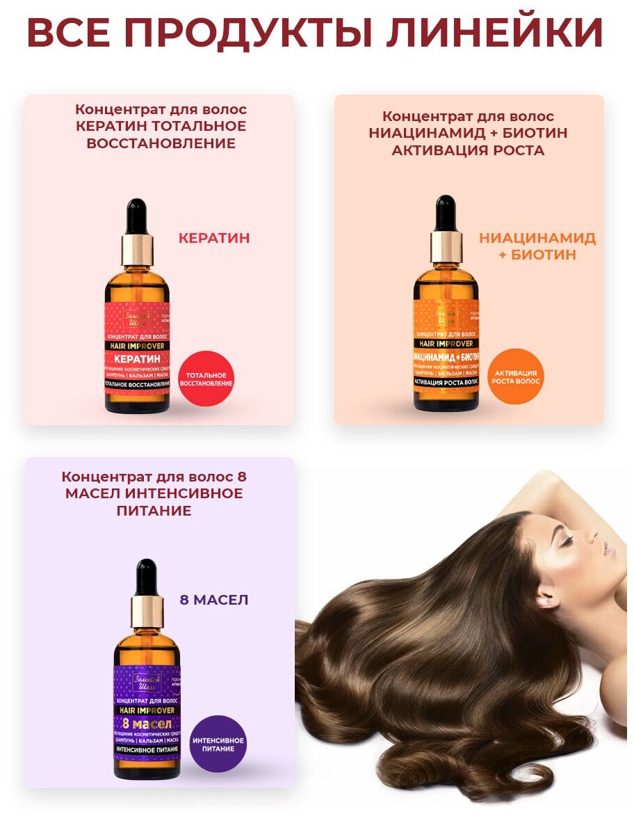 Золотой Шелк переворачивает представление об уходе за волосами с ног на голову! Коллекция концентратов Hair Improver повысит эффективность любого шампуня, бальзама или маски до максимума.