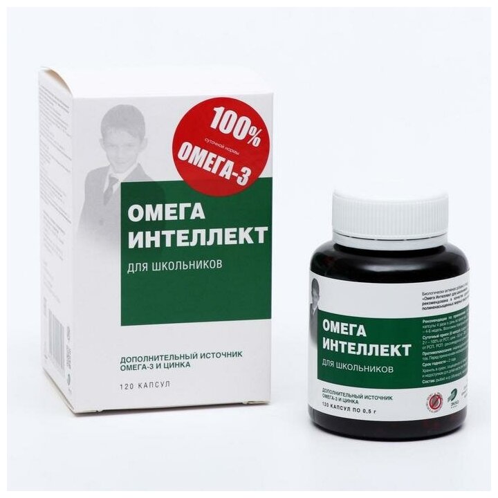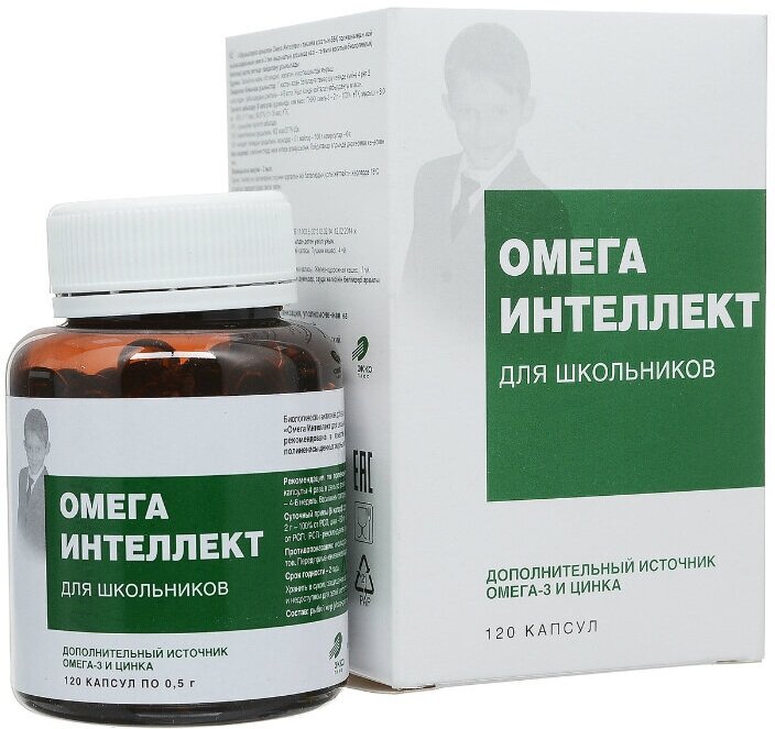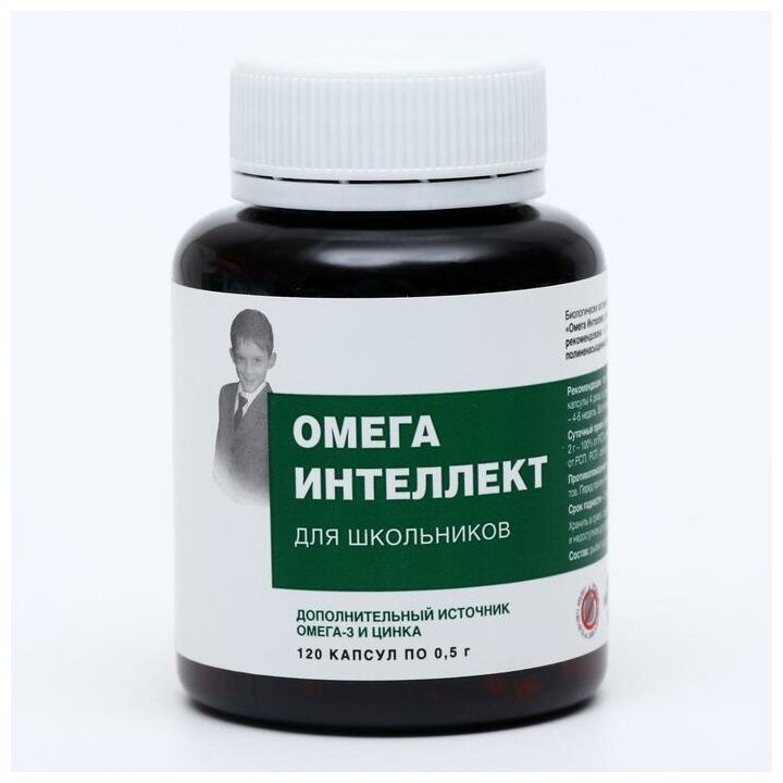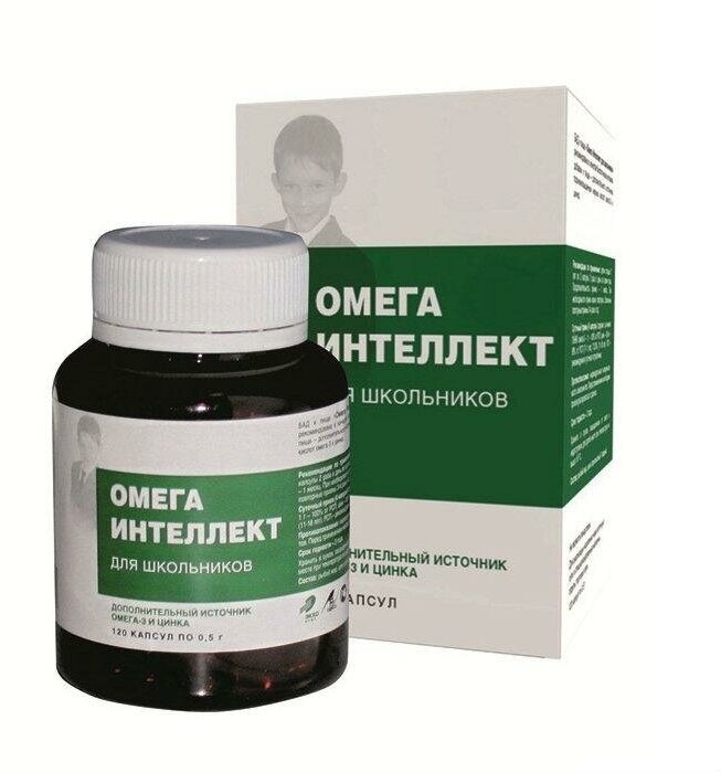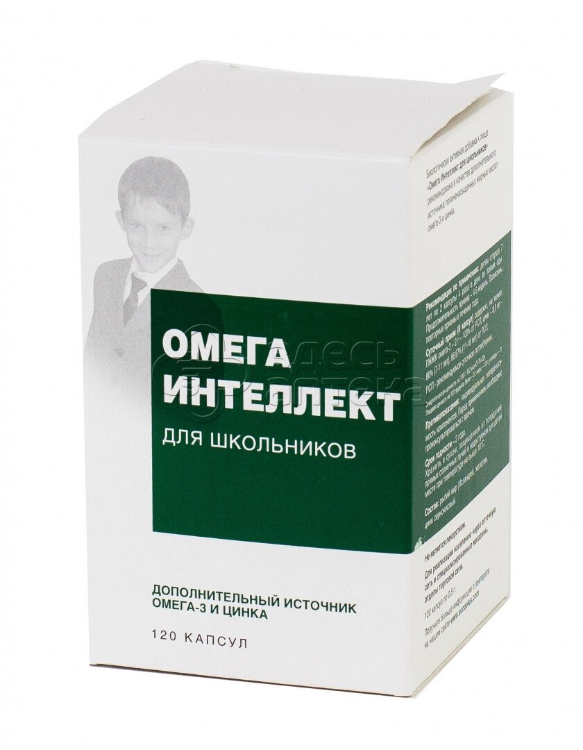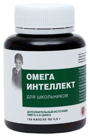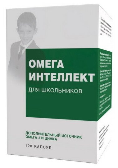 Омега Интеллект для школьников - полноценный источник омега-3 жирных кислот и цинка для детей с 7 лет.Это единственный комплекс для детей с 7 лет, содержащий 100% суточной нормы омега-3 в форме триглицеридов. Триглицериды - это эволюционно сбалансированная форма омега-3, которая доказала свою эффективность и безопасность. Комплекс дополнен цинком.Улучшая взаимодействие между клетками мозга, омега-кислоты достоверно активизируют все интеллектуальные способности ребенка – внимание, память, анализ информации, мышление, эмоции. Высокая концентрация цинка помогает иммунной системе бороться с вирусами.В составе используется тресковый жир из Исландии. Треска - это дикая рыба, которую нельзя вырастить в неволе. В этом ее важнейшее преимущество. В отличие от аквакультурных сортов рыбы (выращиваемых на фермах, где корма содержат антибиотики для профилактики заболеваний рыб в условиях большой скученности), треска обитает и кормится в естественных условиях, преодолевает большие расстояние и "нагуливает" жир без вмешательства человека.Главное преимущество триглицеридной формы перед этилэфирами (синтезированный аналог, который маскируют сегодня под названиями "высокоочищенный рыбий жир" или "концентрированный рыбий жир") - более высокая биодоступность. Триглицериды - та форма омега-кислот, в которой они "доставляются" точно в цель.Омега Интеллект для школьников не содержит сахара, ароматизаторов и красителей, поэтому его можно использовать на постоянной основе - без опасения получить вместе с полезными омега-3 бесполезные или вредные вещества.Суточный прием (8 капсул) содержит:омега-3 – 2 гцинк – 8 мг.Для удобства и экономии допускается прием половины суточной дозы (4 капсулы), при этом в организм будет поступать по-прежнему значимое количество омега-3 - 1 грамм - а упаковки хватит на 30 дней приема.