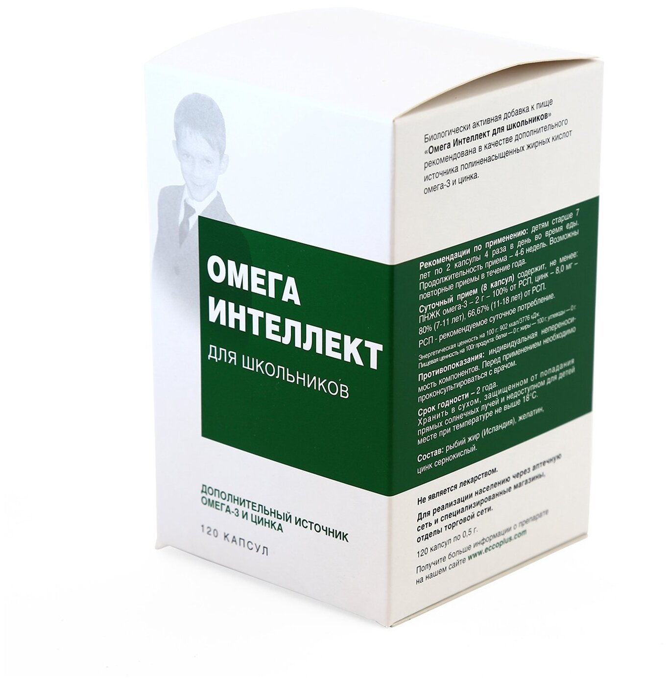 Омега Интеллект для школьников капсулы 500мг 120 шт. ЭККО ПЛЮС Омега-3 интеллект школьников