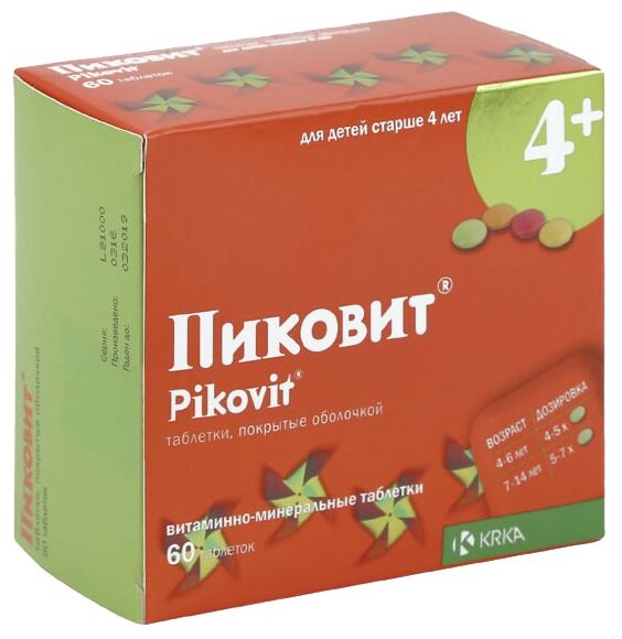 Пиковит таблетки п.п.о. 60 шт. АО КРКА, д.д., Ново место (571853)