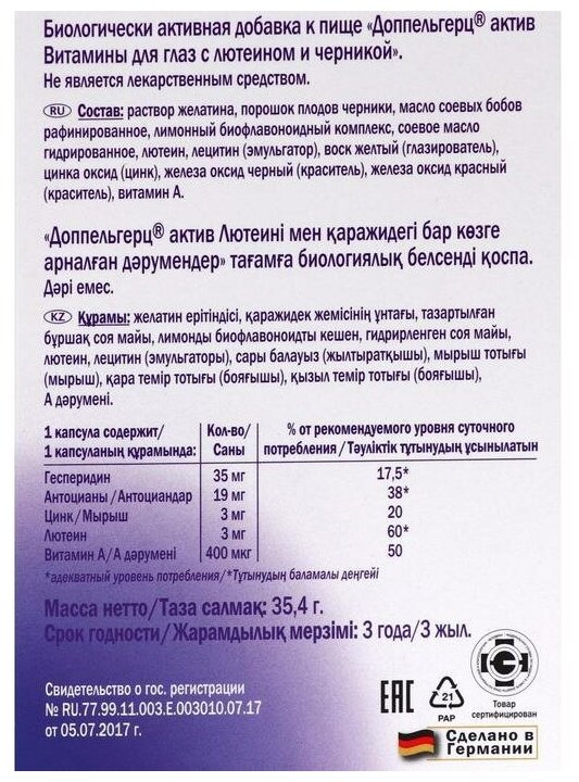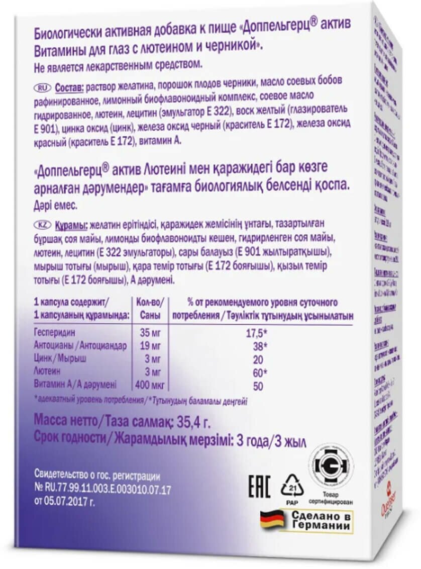 | Торговое наименование | Доппельгерц Актив Витамины для глаз |