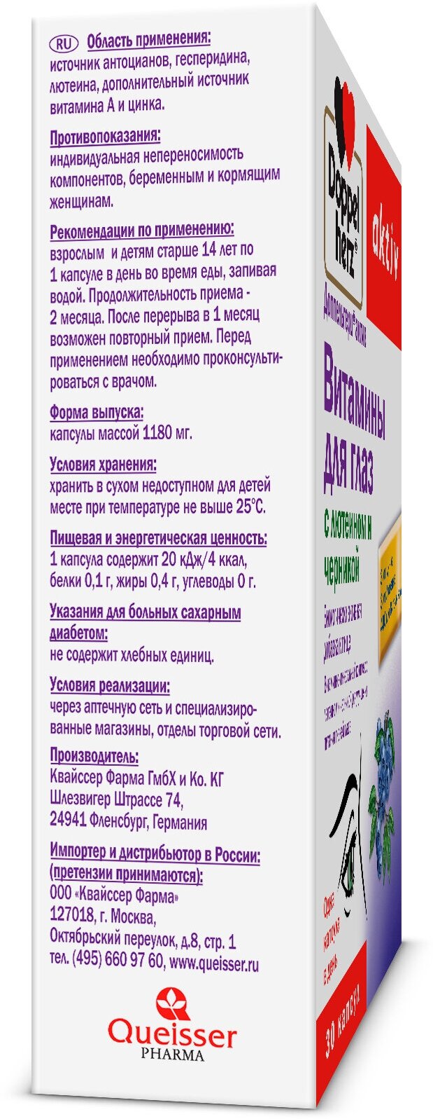 Doppelherz (Доппельгерц) Activ Витамины для глаз с лютеином и черникой капсулы 30 шт. Queisser Pharma (572716)
