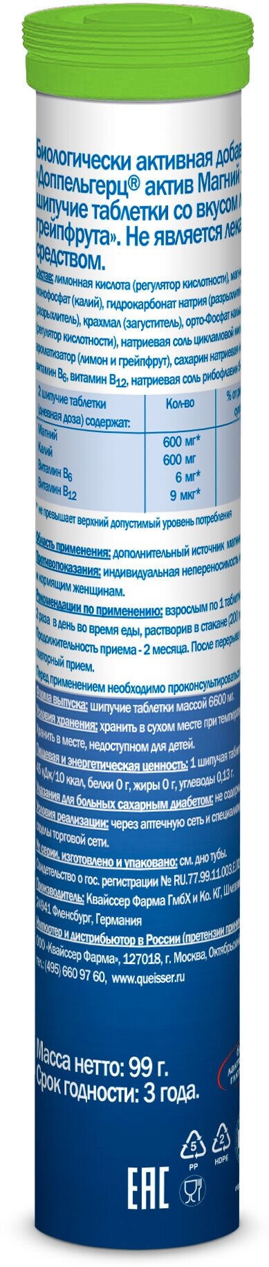 Доппельгерц® актив Магний+Калий таблетки шипучие 6000 мг; упаковка 15; № RU.77.99.11.003.Е.044092.08.11, 2011-08-25 от Квайссер Фарма (Россия); производитель: Queisser Pharma GmbH & Co. KG (Германия) Фармакологическая группа Другие БАДыУсловия хранения Доппельгерц® актив Магний+Калий В сухом месте, при температуре не выше 25 °C. Хранить в недоступном для детей месте. Срок годности Доппельгерц® актив Магний+Калий 3 года. Не применять по истечении срока годности, указанного на упаковке. 2000-2015. Регистр лекарственных средств России База данных предназначена для специалистов сферы здравоохранения. Не разрешается коммерческое использование материалов.