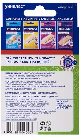 Пластырь Унипласт бактерицидный натуральный 19х72 см. 20 шт. АО Верофарм (664499)