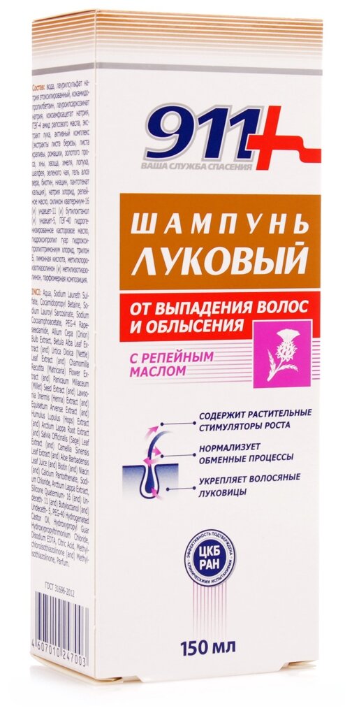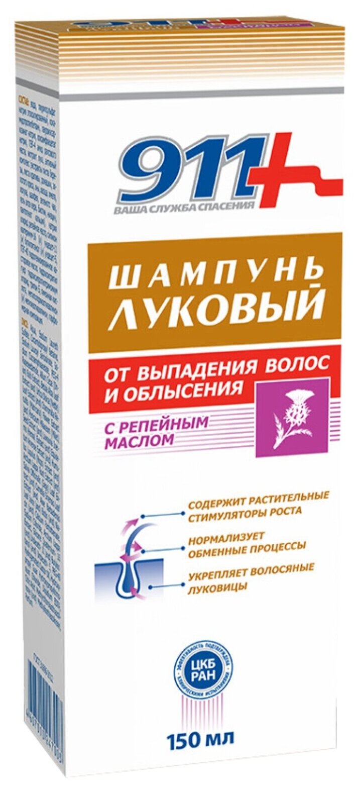 911 Шампунь луковый от выпадения волос и облысения с репейным маслом 150 мл ТВИНС Тэк (573092)
