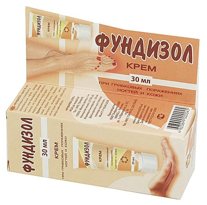 Крем Фундизол эффективное средство при грибковых поражениях ногтей, грибковых и бактериальных поражениях кожи, "вросшем ногте". Размягчает и удаляет поврежденную часть ногтевой пластинки и поверхностных пораженный слой поврежденного грибком эпидермиса. Смягчает кожу стоп, заживляет кожные трещины. Устраняет неприятный запах ног. Не вызывает раздражение кожи. "Подсушивает" кожные высыпания. Предотвращает излишнюю потливость стоп.
