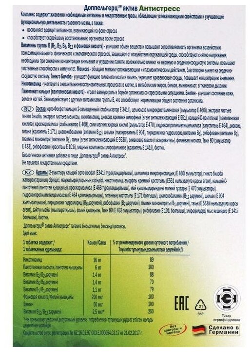 На сегодняшний день товар «Doppelherz (Доппельгерц) Activ Антистресс таблетки 30 шт. Queisser Pharma (572716)» можно купить с кешбеком в 3 магазинах: ЗдравСити, Аптека Озерки, Яндекс.Маркет