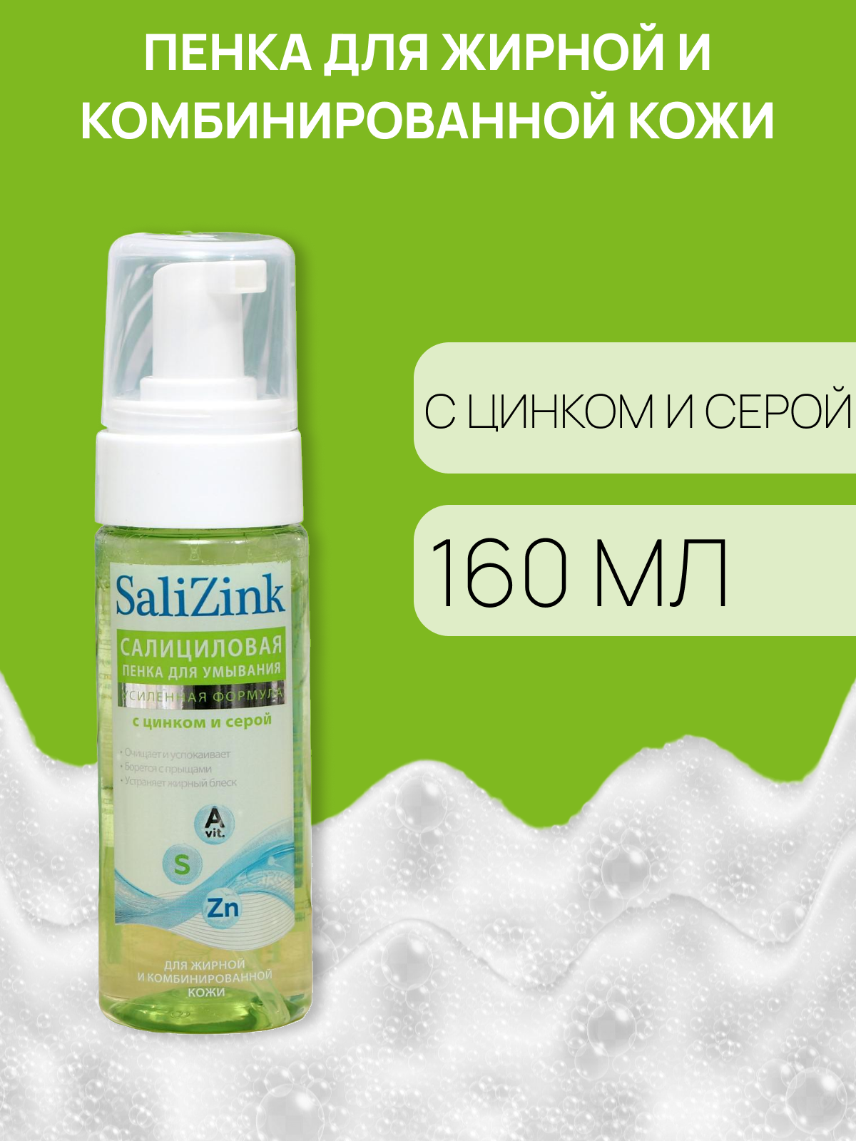 Пенка Salizink (Салицинк) для умывания с цинком и серой для жирной и комбинированной кожи 160 мл ЗАО НПО Химсинтез RU (572266)