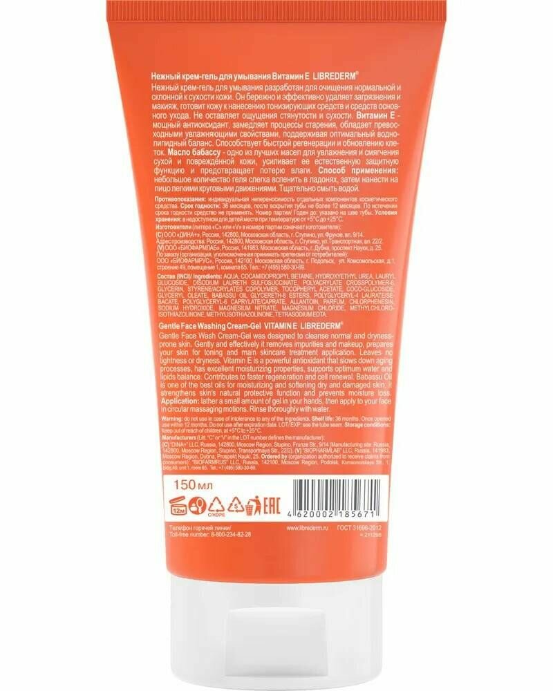 Крем-гель Librederm (Либридерм) Витамин Е нежный для умывания 150 мл Р.Косметик /Дина+ (570844)