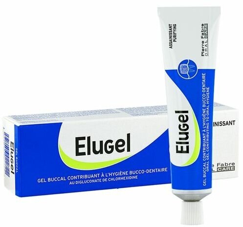 | Полное наименование | Гель Elugel (Элюгель) для десен с хлоргексидином 0.2%, 40 мл |