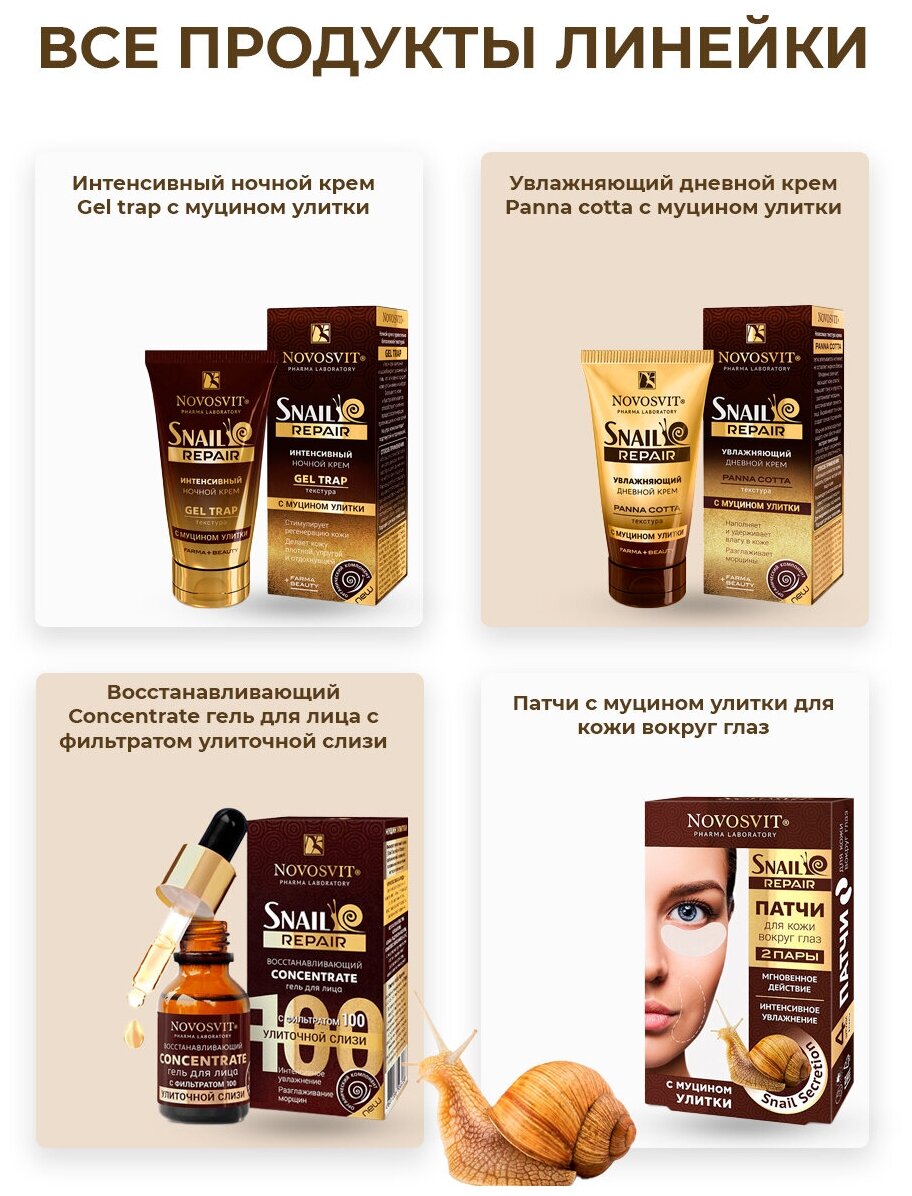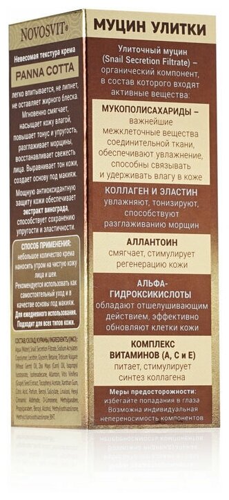 Крем NOVOSVIT (Новосвит) Snail Repair Panna Cotta дневной увлажняющий с муцином улитки 50 мл Народные Промыслы ООО (573297)