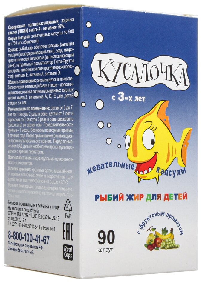 Кусалочка рыбий жир для детей капсулы жев. 500 мг 60 шт. РЕАЛКАПС АО (764171)