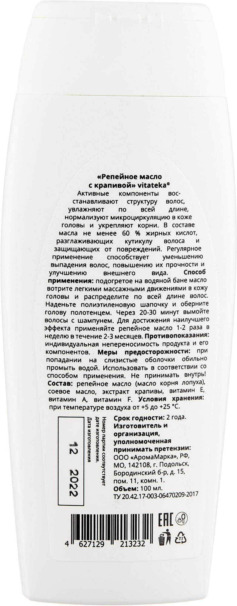 Масло Vitateka (Витатека) репейноес крапивой 100 мл Аромамарка RU (675885)