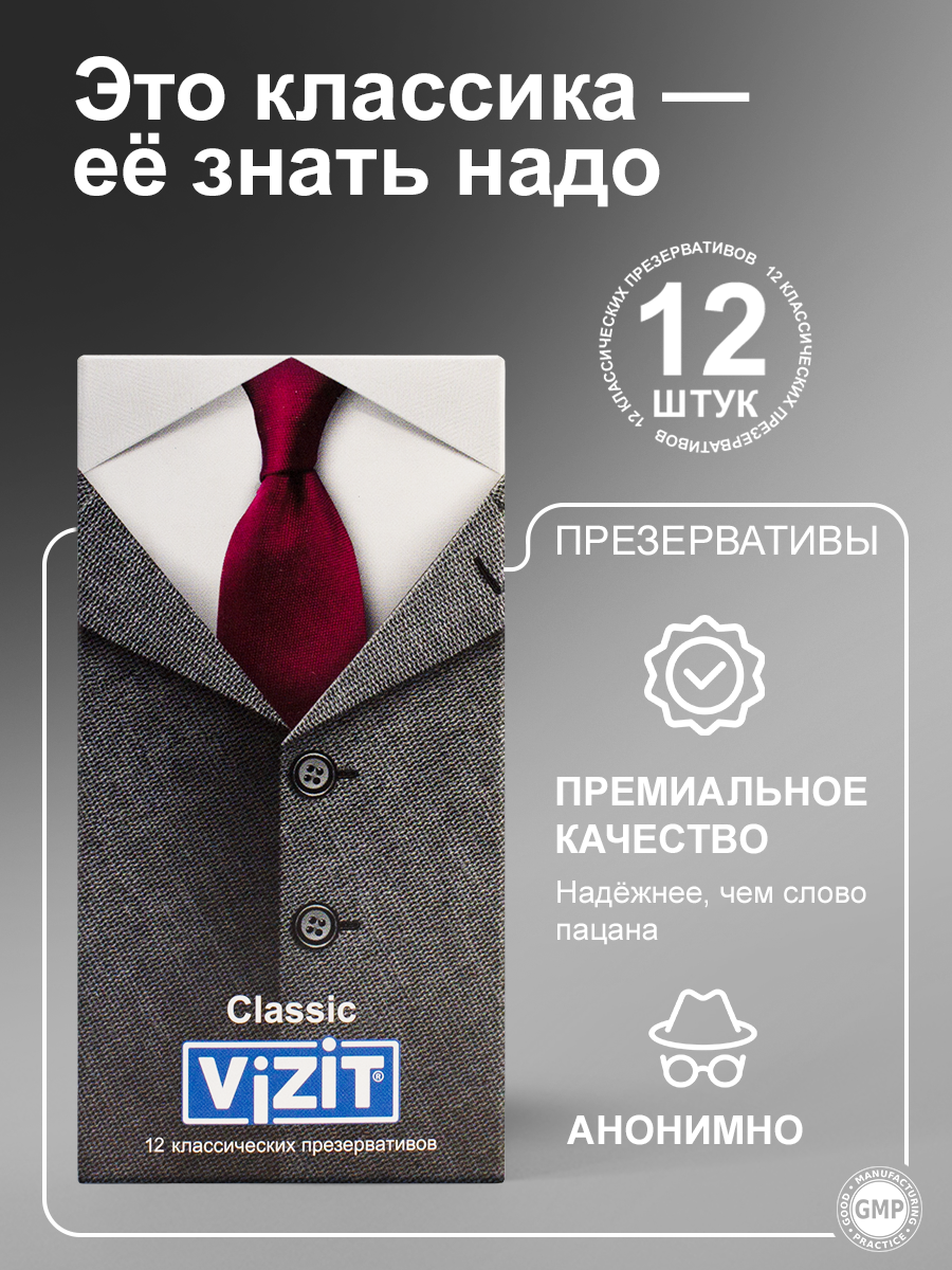 Презервативы Vizit Classic Классические гладкие, прозрачные, с накопителем, с силиконовой смазкой. Классика всегда ценилась, и будет цениться. Именно эти презервативы отлично подойдут для уверенного комфортного секса.