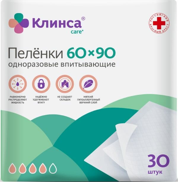 Пеленки КЛИНСА впитывающие для взрослых 60х90 см. 30 шт. ООО Интертекс (574203)