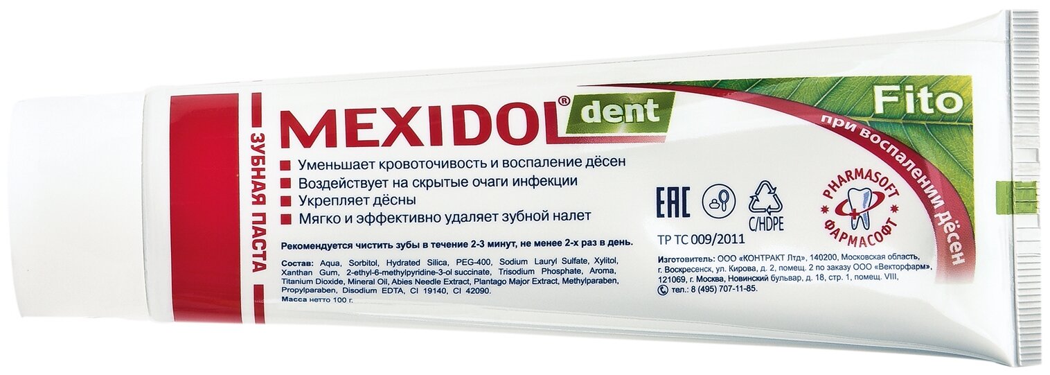 Паста Mexidol (Мексидол) зубная Dent Fito 100 г ООО "КОНТРАКТ LTD" RU (574460)