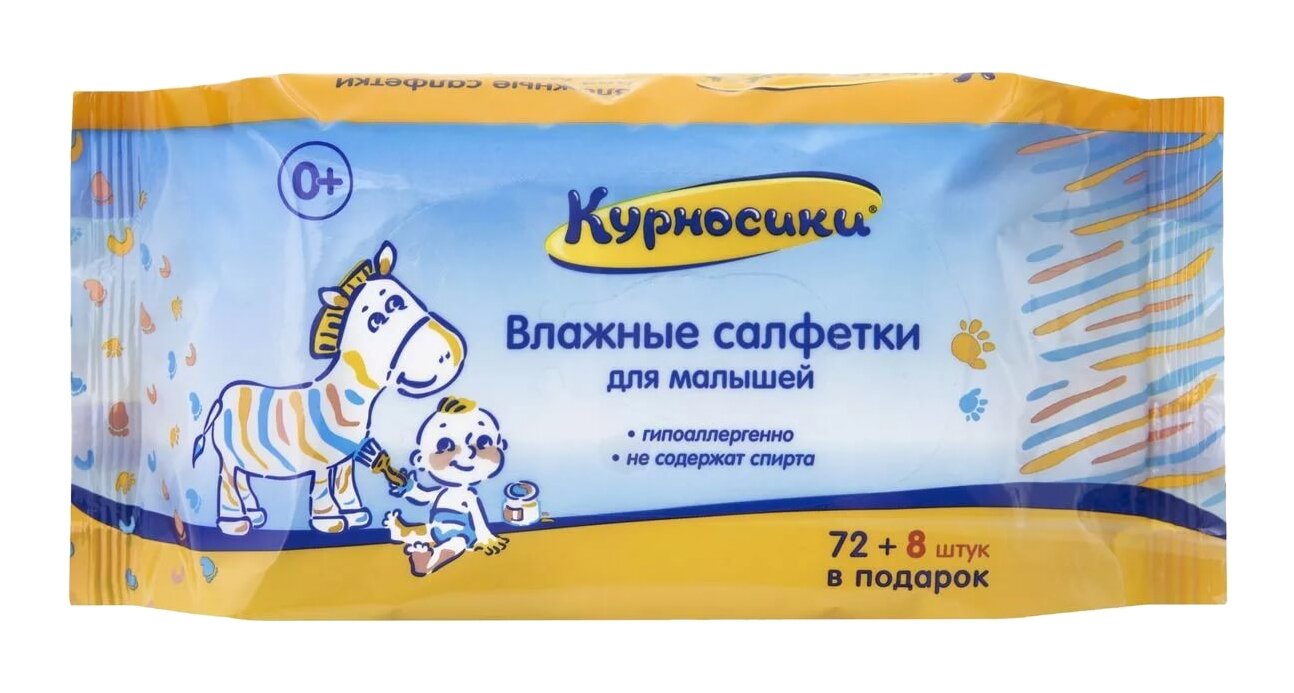 Салфетки Курносики влажные детские 0+ мес. 80 шт. (72 шт. + 8 шт. в подарок) Мир Детства (573211)