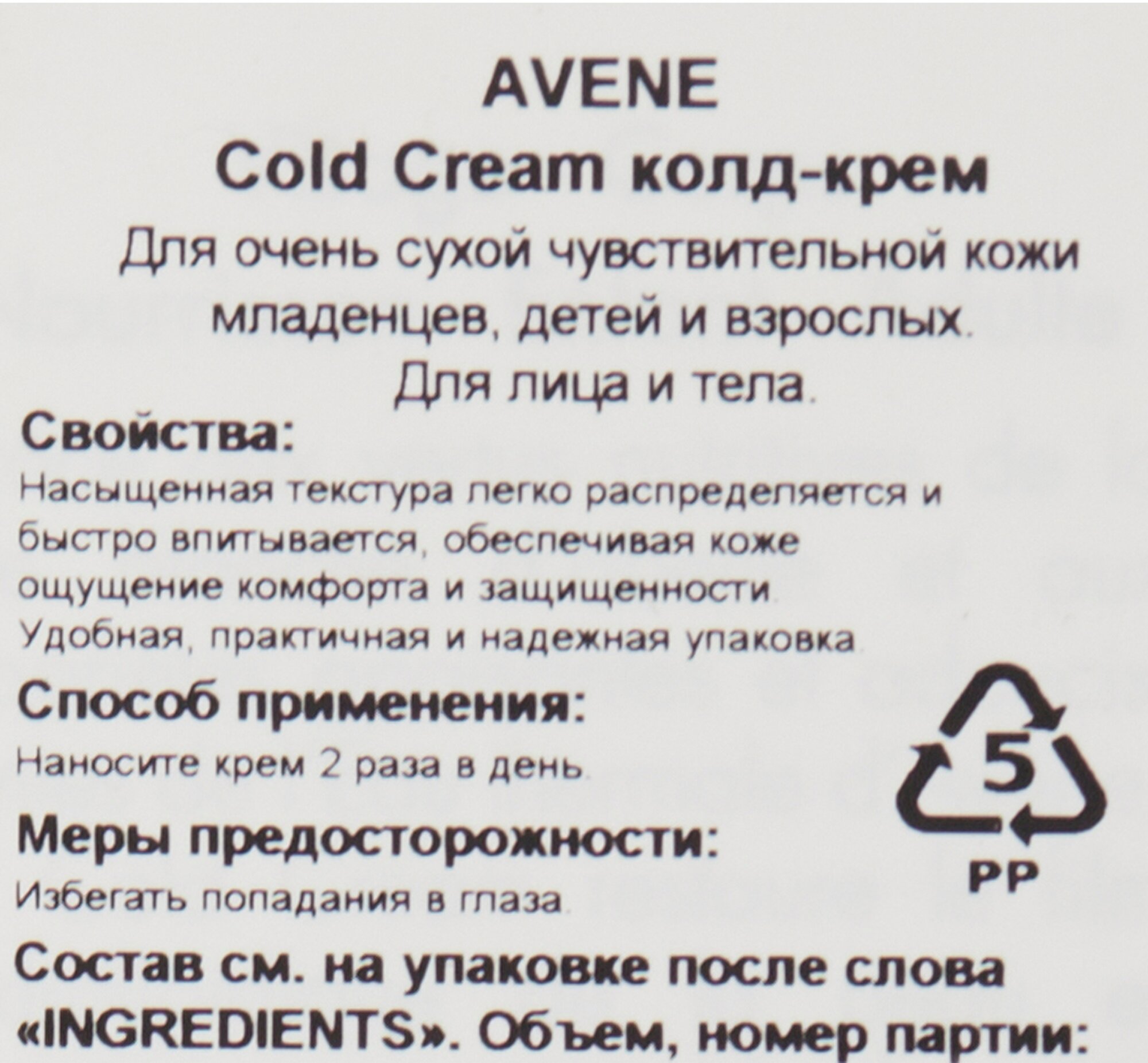 | Торговое наименование | Avene Cold Cream |