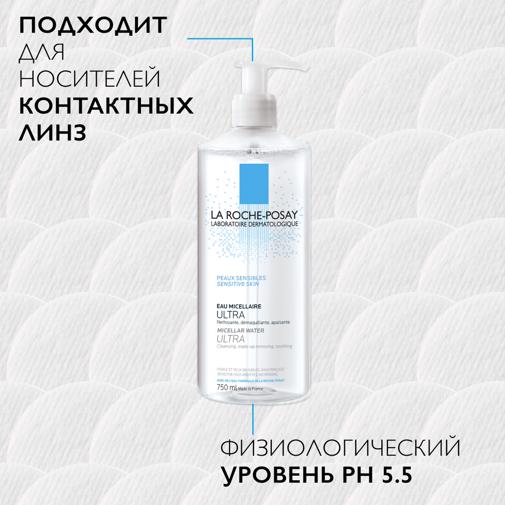Мицеллярная вода La Roche-Posay Physiological Cleansers Micellar Water Ultra for Sensitive Skin связывают и растворяют следы косметики и другие виды загрязнений, полностью очищая кожный покров и оптимизируя его физиологический баланс.