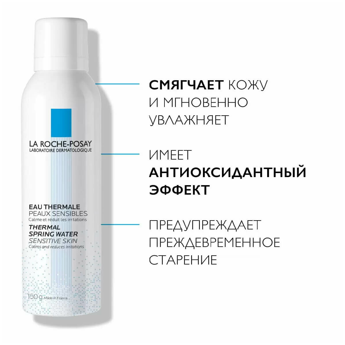 Термальная вода La Roche Posay успокаивает, смягчает и увлажняет кожу, устраняет дискомфортное состояние, предотвращает старение кожи, является природным антиоксидантом. Подходит для чувствительной кожи, кожи, склонной к раздражению от воздействия внешних факторов (солнечное излучение, дерматологические процедуры, т.п.). Микрокапли легко проникают в кожу, моментально её успокаивая.