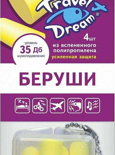 Беруши Travel Dream (Трэвел дрим) пенопропиленовые усиленная защита 4 шт. ООО "БИОФАРМРУС" (1090911)