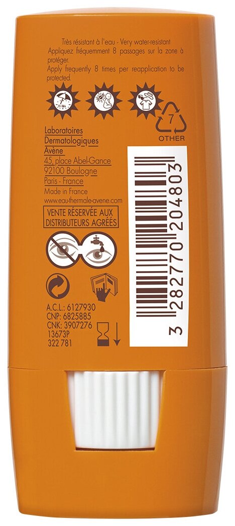 Avene Солнцезащитный стик для чувствительных зон SPF 50+ полностью соответствует потребностям светлой, чувствительной кожи и предназначен для чувствительных зон: носа, ушей, век, лица, подмышечных впадин. Солнцезащитный стик с высоким фактором защиты содержит компоненты, обладающие успокаивающими свойствами. Средство содержится в удобной упаковке, в одно мгновение выкручивается и закрывается колпачком. Средство быстро и легко наносится на кожу, не оставляя пятен на одежде.