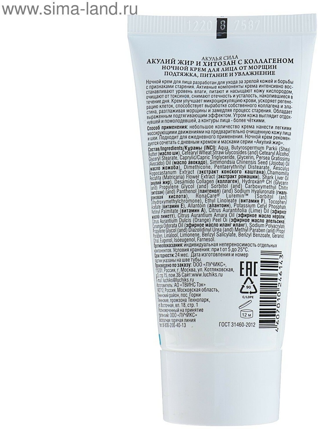 Сервис сравнения цен СкидкаГИД предлагает сравнить цены на товар «Крем Акулий жир и хитозан с коллагеном ночной от морщин 50 мл ТВИНС Тэк (573092)»