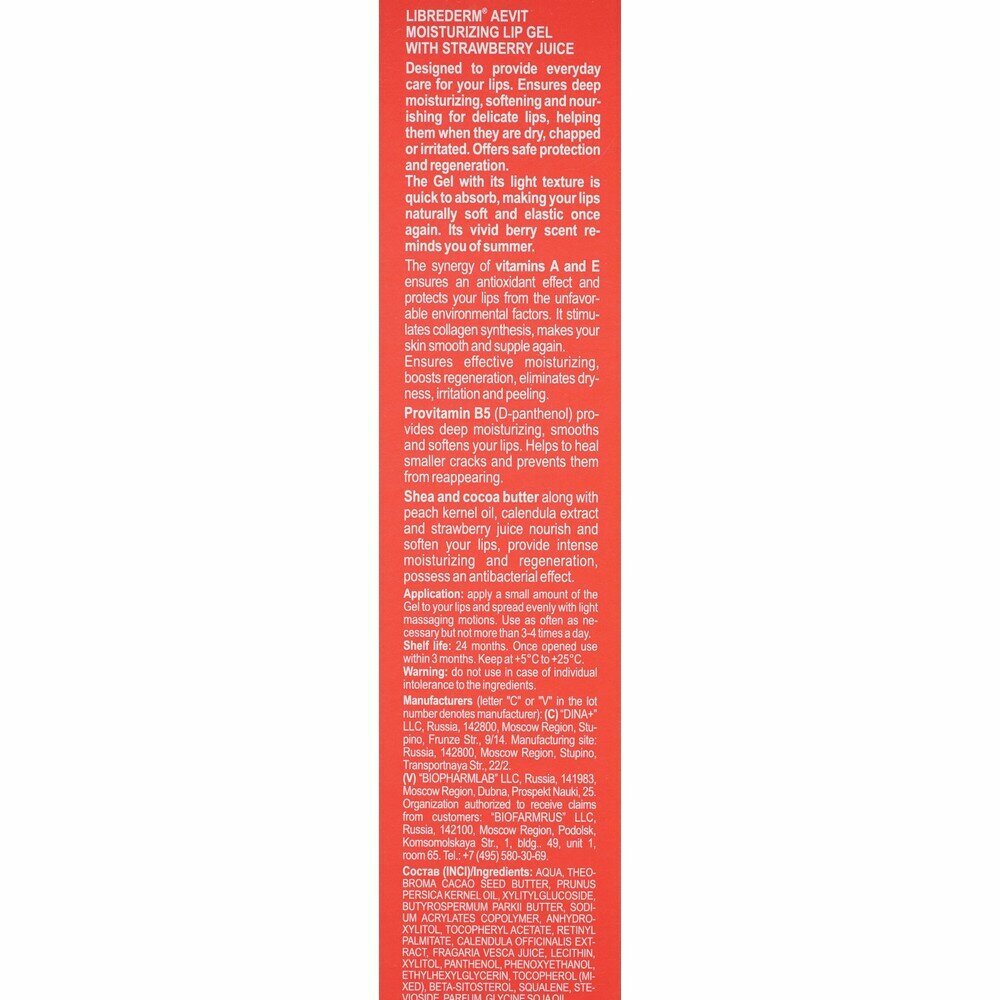 Гель Librederm (Либридерм) Аевит увлажняющий для губ с соком клубники 20 мл Р.Косметик /Дина+ (570844)