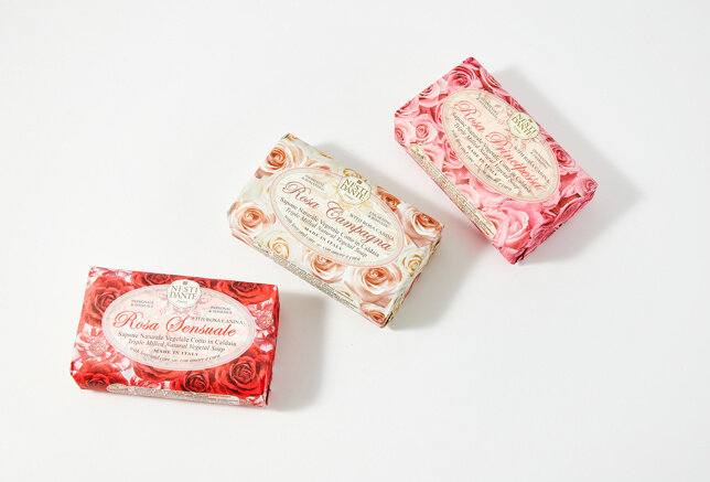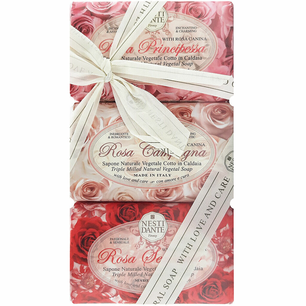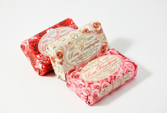 Nesti Dante — экологически чистое мыло, обогащенное растительными экстрактами и маслами. Производится во Флоренции с 1947 года по старинной котловой технологии варки мыла. Каждый сорт розы обладает своим чарующим ароматом и восхитительной красотой. В знак особого внимания к этому удивительному цветку Nesti Dante создал три вида мыла, вдохновленные разными сортами роз. Rosa Campagna (Роза из Кампаньи) обладает тонким, как шелк, ароматом. Rosa Sensuale (Чувственная роза) имеет мягкий пудровый аромат, без выраженного звучания розы. Rosa Principessa (Роза принцесса) имеет легкий, хорошо знакомый, аромат цветущих роз в весеннем саду. Экстракт плодов дикой розы (rosa canina fruit /шиповник) – обладает мощным увлажняющим эффектом, способствует регенерации кожи.