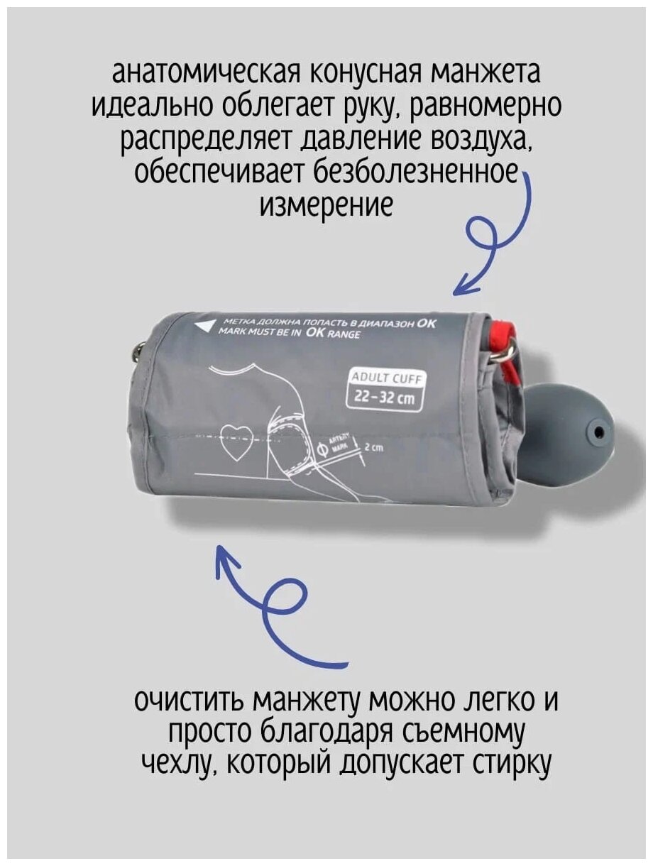 - Конусообразная манжета для обхвата плеча 22 - 32 см.