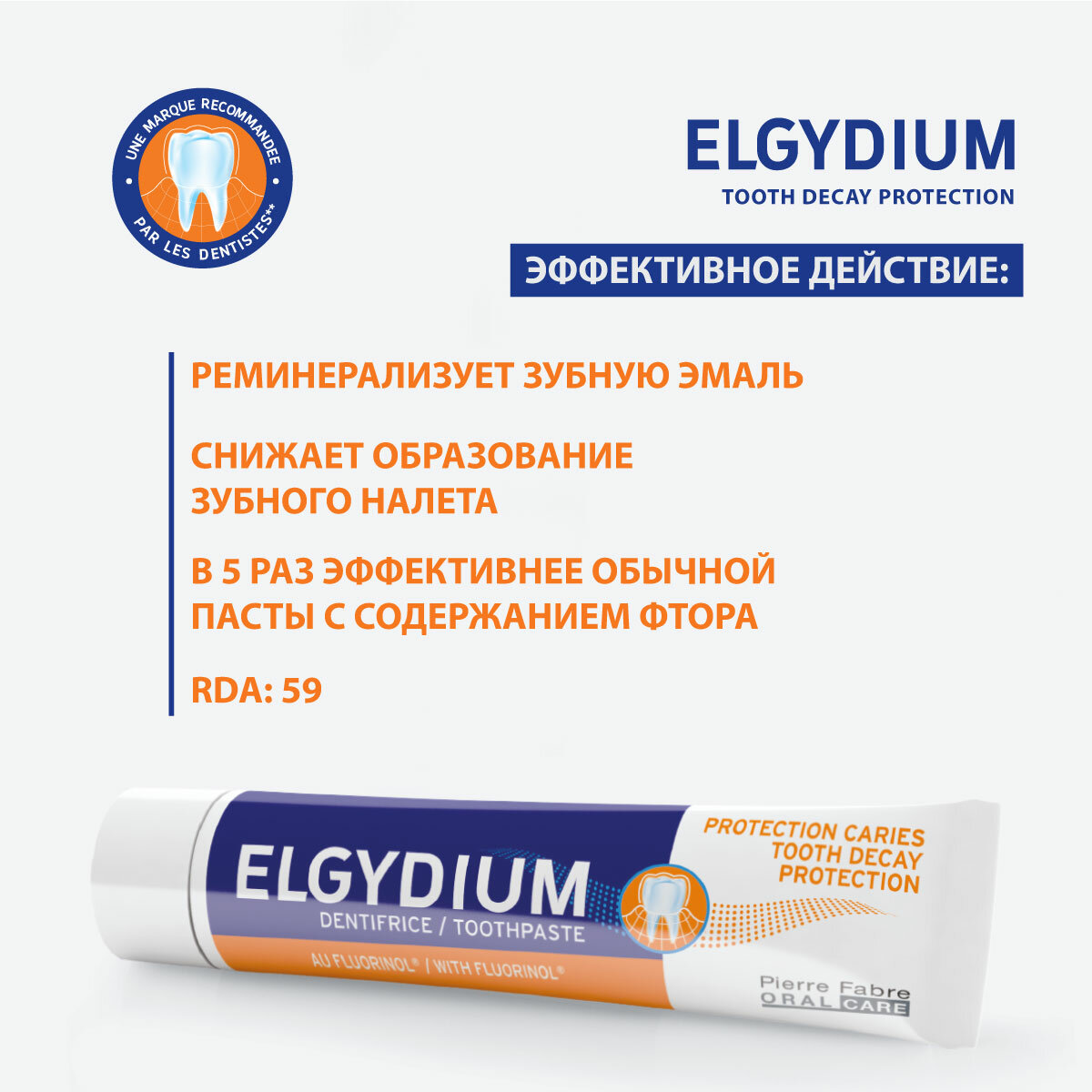 Паста ELGYDIUM (Эльгидиум) зубная Защита от кариеса 75 мл Пьер Фабр Медикамент Продакшн/Рекордати Хим. и Фарм. Индустрия (1092369)