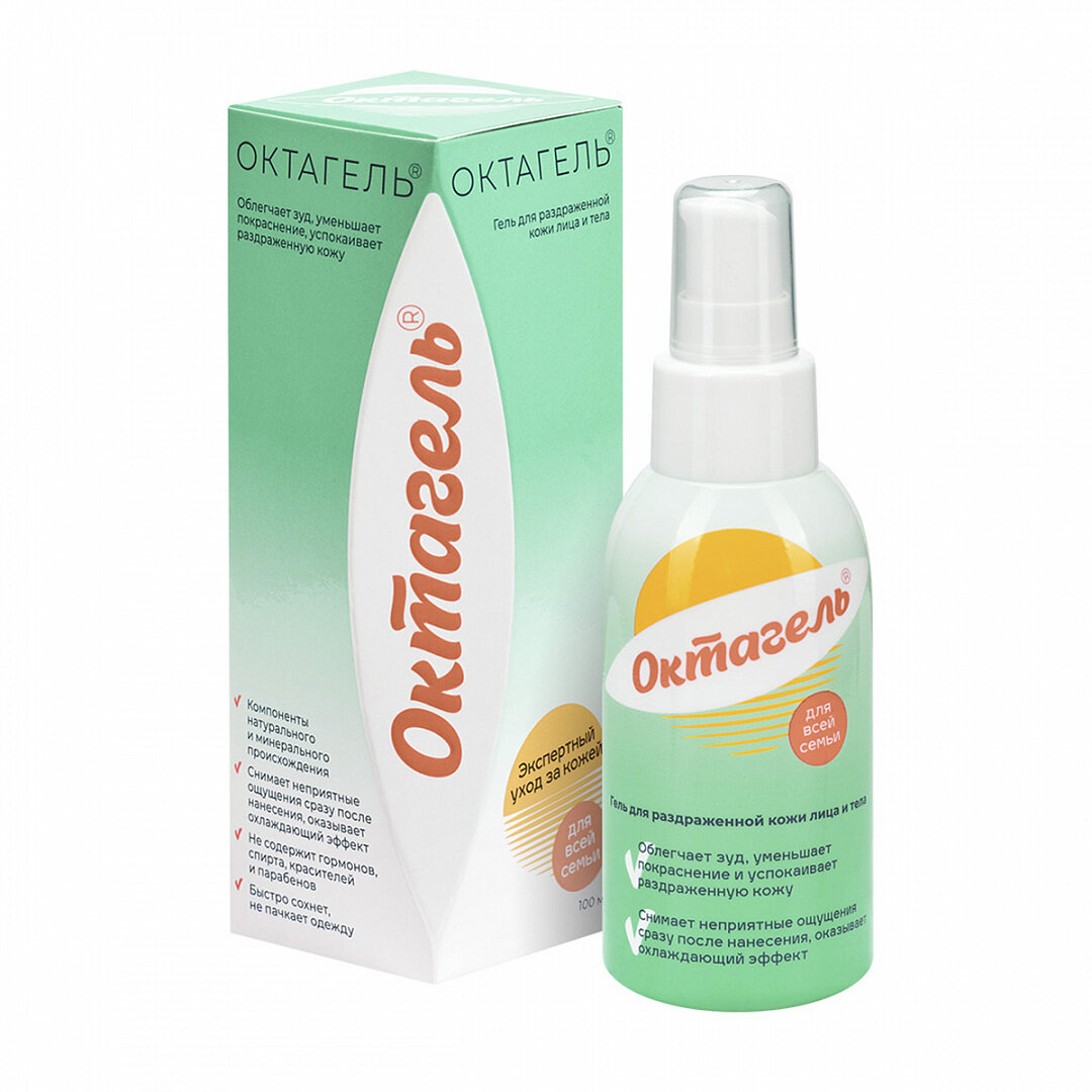Октагель – гель для раздраженной кожи лица и тела.Облегчает зуд, успокаивает раздраженную кожу и уменьшает покраснение. Компоненты растительного и минерального происхождения способствуют уменьшению зуда, отека и воспаления, успокаивают кожу, оказывают антимикробное, охлаждающее и подсушивающее действия, ускоряют ее заживление и предотвращают образование рубцов.Аммония глицирризинат способствует снижению интенсивности зуда и воспаления (отека и покраснения кожи), уменьшению выраженности кожных аллергических реакций, а также подавления активности вирусов на коже лица и тела: простого герпеса, ветряной оспы, опоясывающего лишая и контагиозного моллюска;Экстракт семечек сельдерея способствует снижению «навязчивого» зуда и раздражения кожи;Декспантенол/Провитамин В5 способствует заживлению кожи и слизистых оболочек;Полидоканол успокаивает кожу и оказывает местное охлаждающее действие;Тальк подсушивает, уменьшая объем жидких выделений из расчесов и ран;Аллантоин способствует ускорению заживления кожи и предупреждению возникновения рубцов, оказывает антиоксидантный эффект;Экстракт календулы оказывает антимикробный эффект и способствует уменьшению воспаления;Глицерин способствует смягчению кожи.