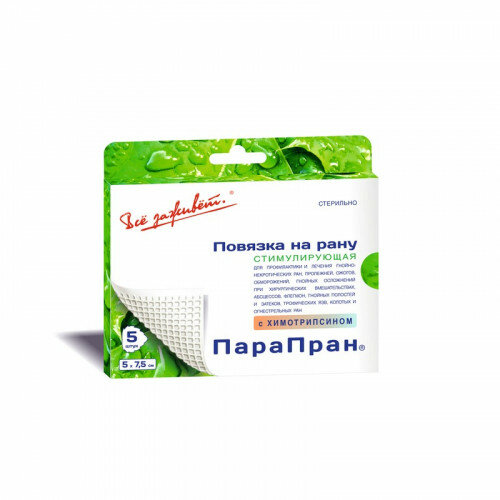 На сегодняшний день товар «Повязка ПАРАПРАН раневая стимулирующая с химотрипсином 75x10 см. 30 шт. Биотекфарм/Новые Перевязочные материалы материалы (1089243)» можно купить с кешбеком в 3 магазинах: ЗдравСити, Aloeapteka, Яндекс.Маркет