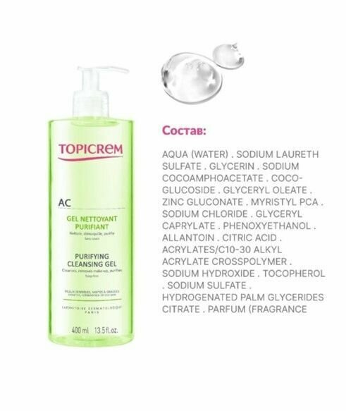 Топикрем АК Гель оздоравливающий очищающий специально разработан для жирной и чувствительной кожи. Формула с оптимальной переносимостью. Деликатно очищает кожу, не пересушивая её Устраняет загрязнения и излишки кожного сала Кожа становится чистой и свежей. Гель обладает приятным ароматом. Протестировано под контролем офтальмологов и дерматологов. Не содержит парабенов. Не содержит мыла.