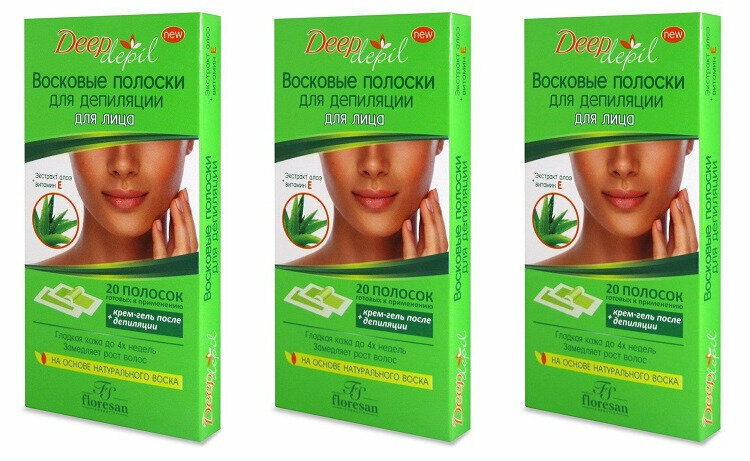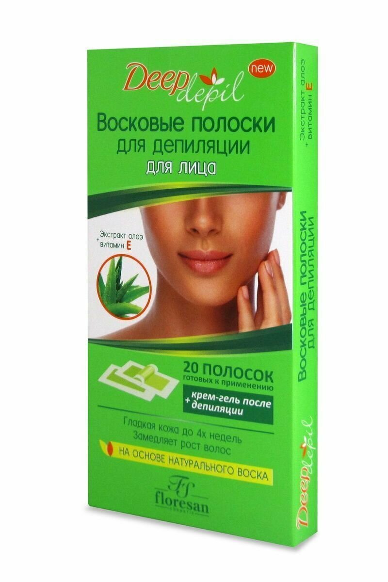 Полоски Floresan (Флоресан) восковые для депиляции лица с алоэ вера Deep depil 20 шт. Флоресан ООО (486922) (размер: Без/раз)