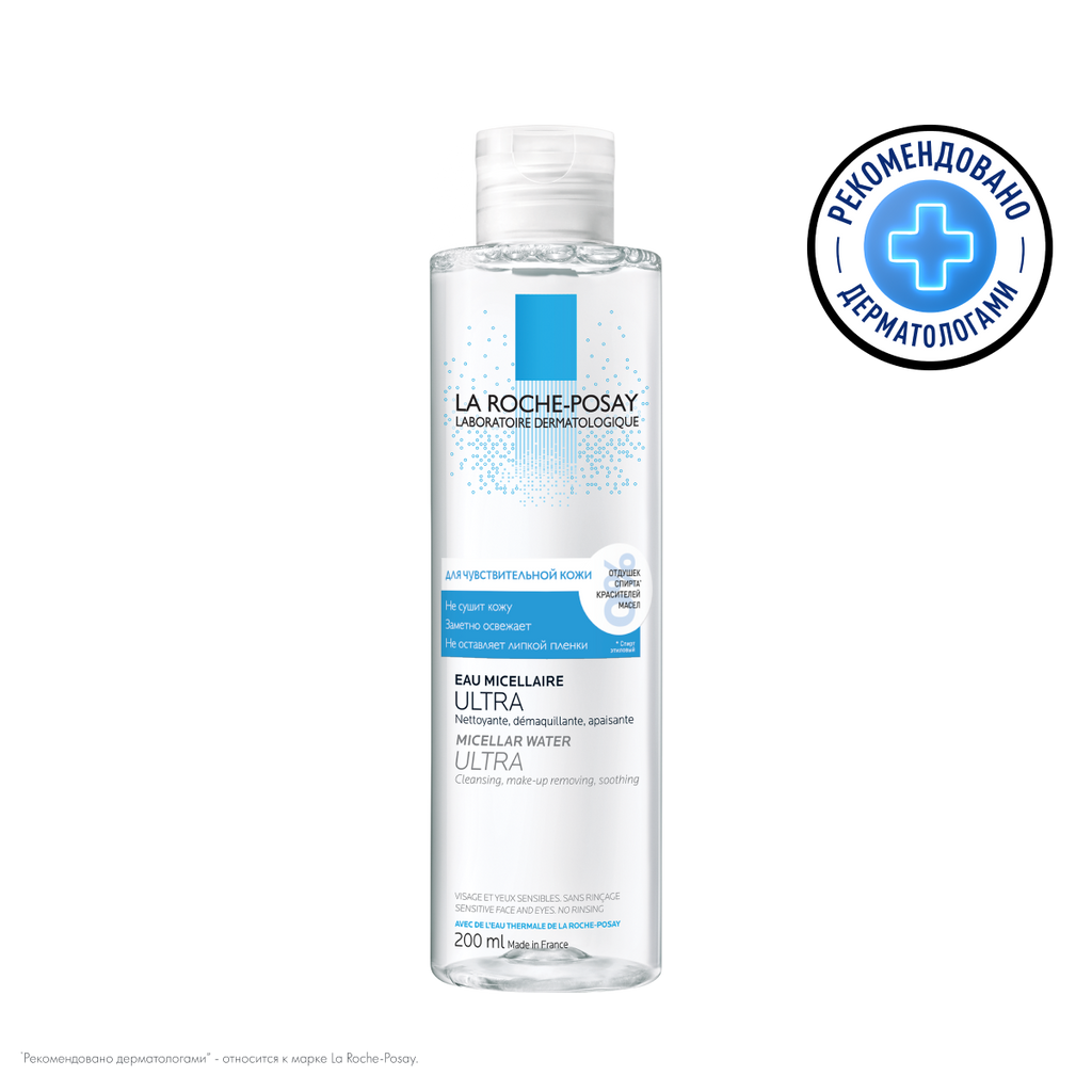 Характерной особенностью мицеллярной воды Ля Рош-Позе Ультра является высокая эффективность в сочетании с прекрасной переносимостью. Это достигается благодаря соединению действия мицелл и глицерина. Продукт легко удаляет макияж и загрязнения с кожи лица и контура глаз, поэтому кожа не подвергается лишнему трению, сохраняется ее защитный слой. La Roche-Posay Eau Micellaire Ultra Sensitive основывается на термальной воде, которая увлажняет, успокаивает кожу и помогает клеткам противостоять оксидативному стрессу. Продукт характеризуется физиологическим уровнем pH 5.5 и не требует смывания водой. Не содержит маслянистых компонентов. без спирта без мыла без красителей без парабенов