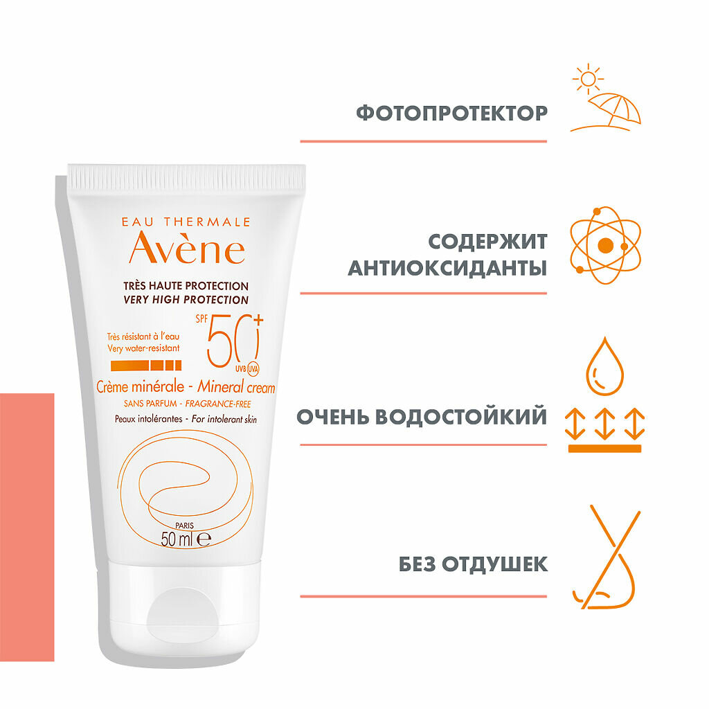 - Авен Солнцезащитный крем с минеральным экраном SPF 50 (Avene Creme Minerale SPF 50)