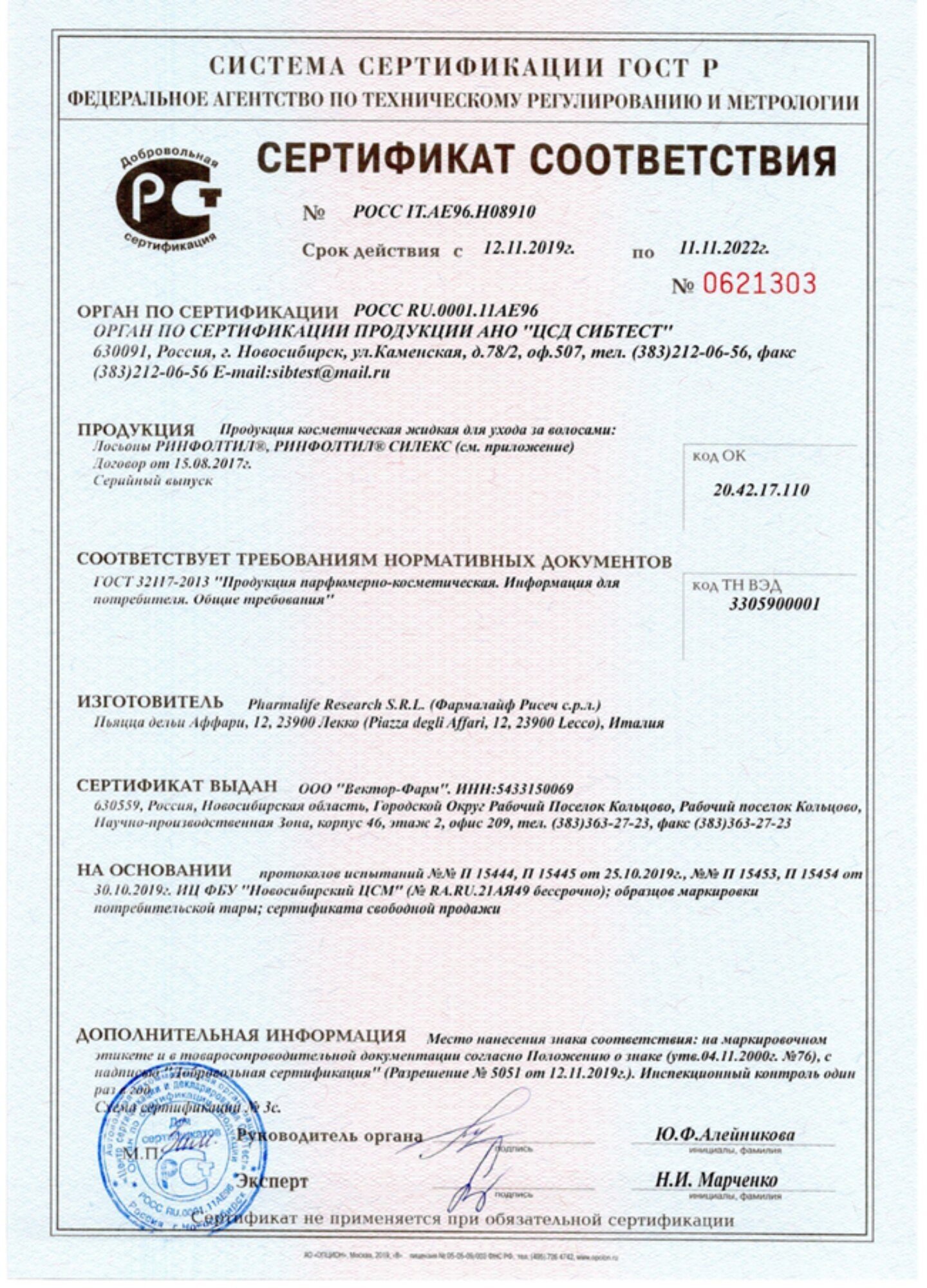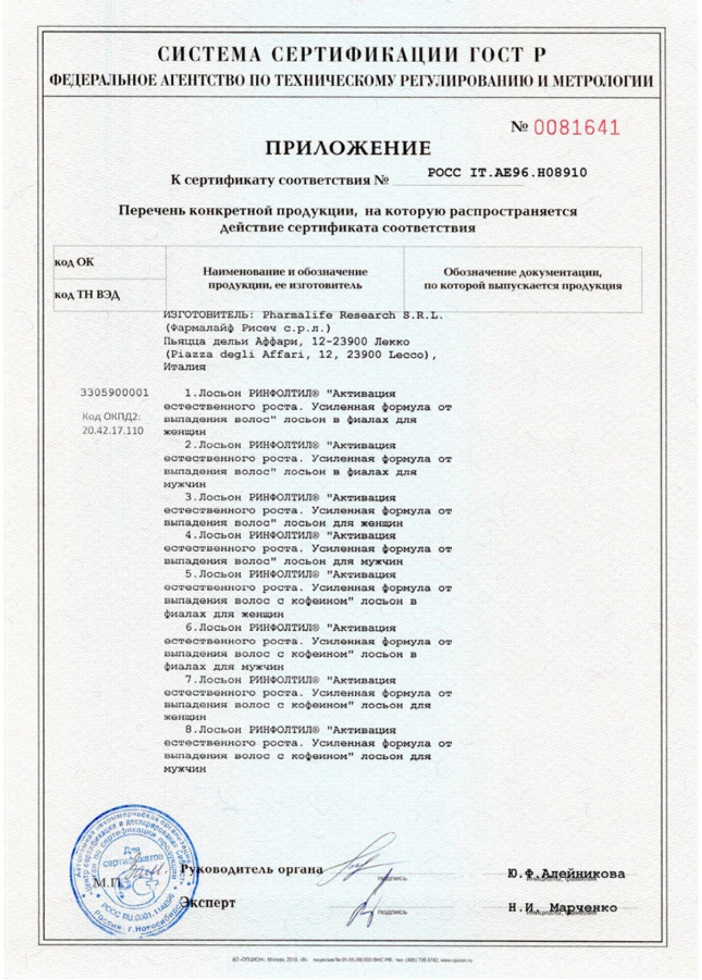 Предназначенный для женщин трихологический состав в фиалах применяется в случаях избыточного выпадения волос. Ринфолтил содержит ударную дозу компонентов, относящихся к фито-ингибиторам 5-альфа-редуктазы. Эти натуральные вещества действуют сразу по двум направлениям: уменьшают в коже количество токсичного для волос дигидротестостерона и снижают восприимчивость волосяных луковиц к действию ядовитого гормона. В результате прекращается процесс потери волос и восстанавливается их естественный рост. Кроме того, Ринфолтил проявляет антисеборейную активность и устраняет перхоть. В состав дополнительно входят фитоэстрогены - вещества, полученные из растений, схожие по действию с женскими половыми гормонами эстрогенами. Фитоэстрогены оказывают на кожу и волосы омолаживающее" действие; не имеют побочных эффектов, характерных для традиционных гормональных препаратов.