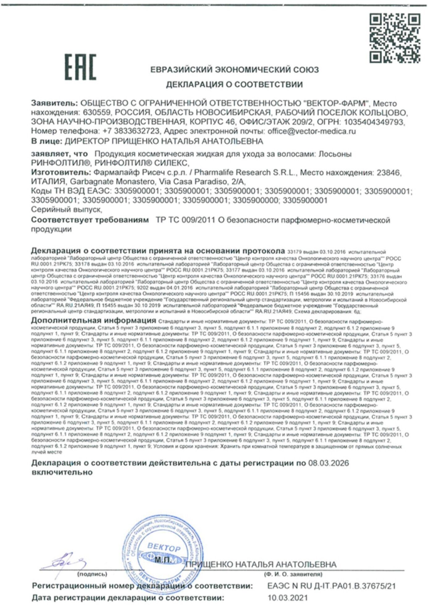 Ринфолтил лосьон Активация естественного роста Усиленная формула от выпадения волос для женщин ампулы 10 мл 10 шт. Pharmalife Research (573274)