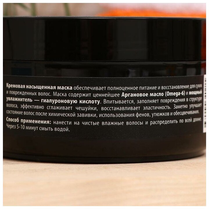 Кремовая насыщенная маска обеспечивает полноценное питание и восстановление для сухих и поврежденных волос. Маска содержит ценнейшее Аргановое масло (Omega-6) и мощный увлажнитель – гиалуроновую кислоту. Впитывается, заполняет повреждения в структуре волоса, эффективно сглаживает чешуйки, восстанавливает эластичность. Заметно улучшает состояние волос после химической завивки, использования фенов, утюжков и обесцвечивания. Обеспечивает интенсивное питание и увлажнение, заполняет повреждения ослабленного волосяного стержня, сглаживает чешуйки, сохраняя целостность структуры волоса по всей длине.