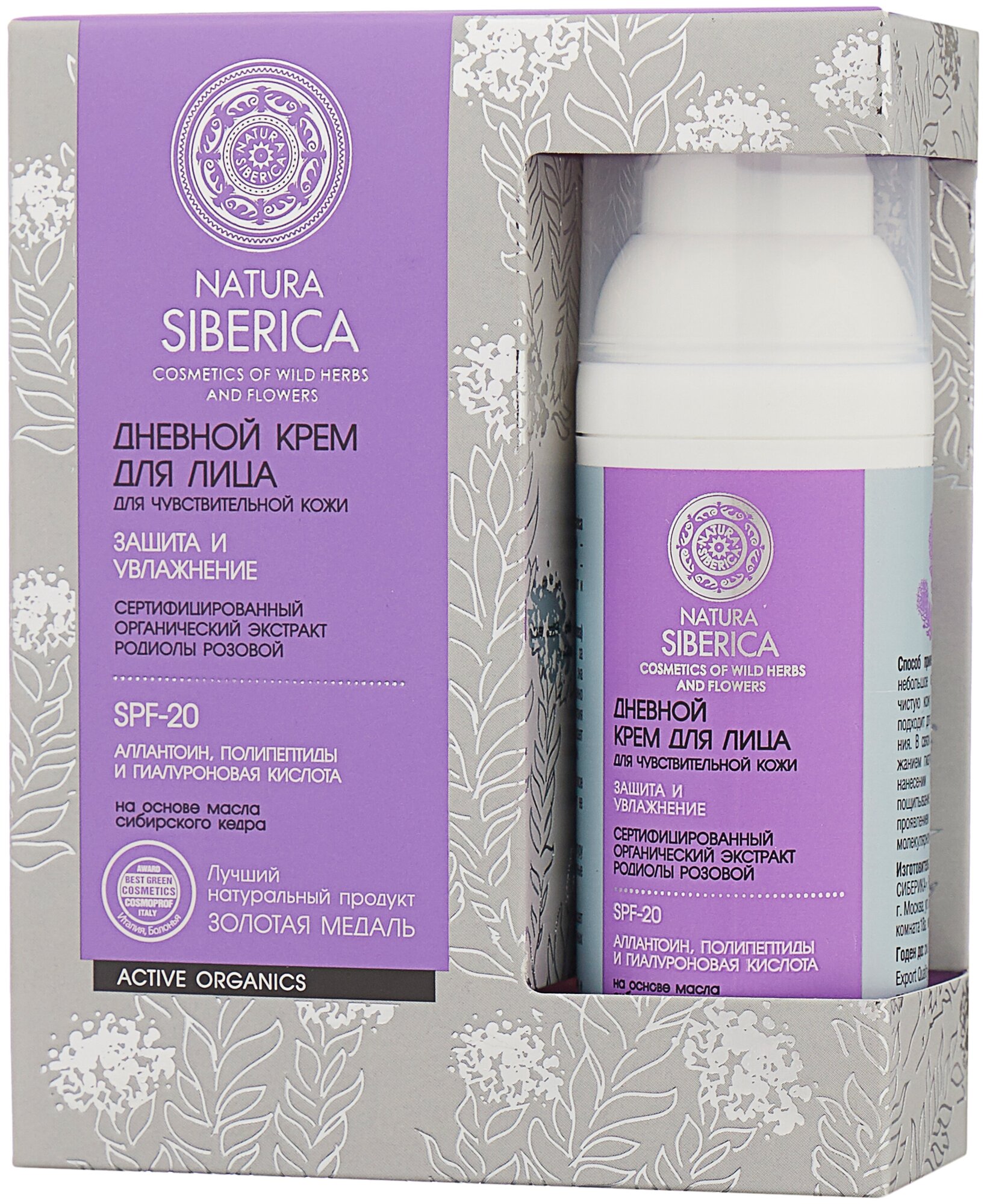 В состав дневного крема для чувствительной кожи лица Natura Siberica входят также витамин Р, укрепляющий кожу, аллантоин, гарантирующий полноценное и глубокое увлажнение кожи, SPF-фактор 20, защищающий от негативного воздействия ультрафиолетовых лучей, а также гиалуроновая кислота, которая позволяет предупредить образование морщин.