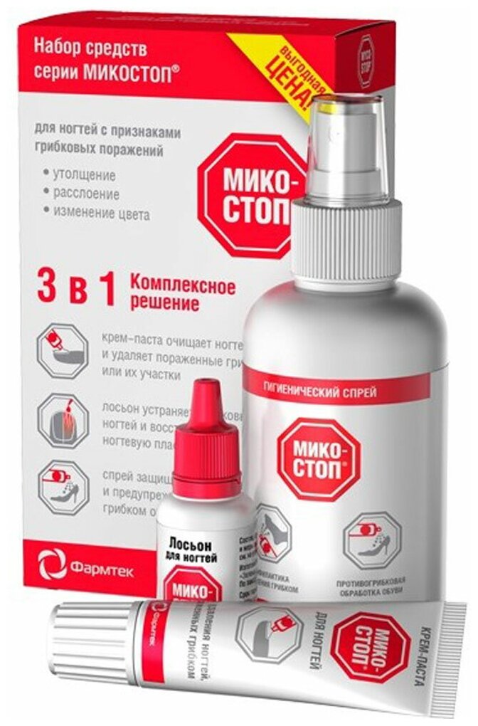 Микостоп крем-паста для ногтей фл. 20 мл + лосьон для ногтей 15 мл + спрей гигиенический фл. 150 мл Зеленая Дубрава ЗАО (487086)