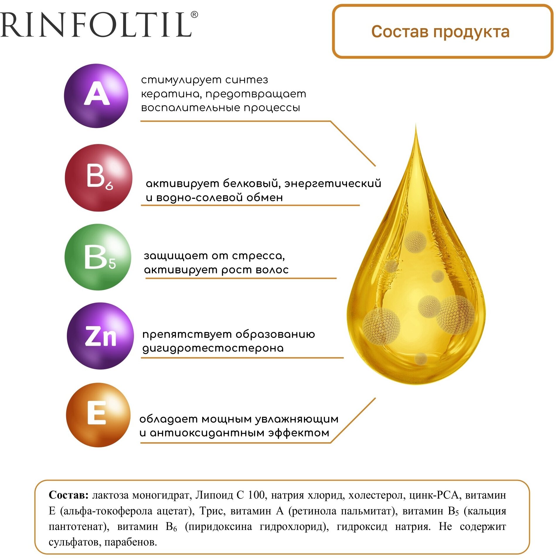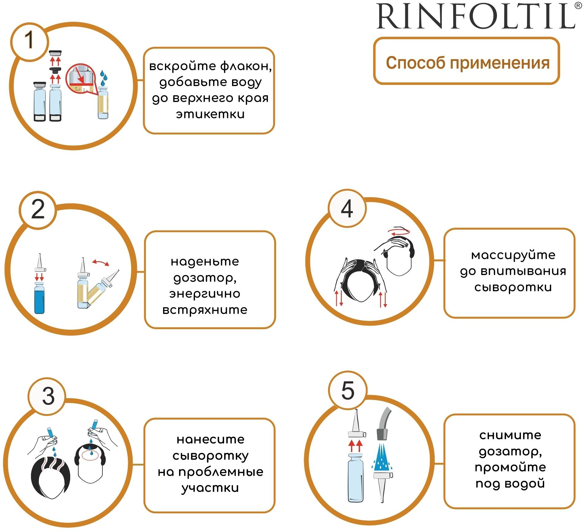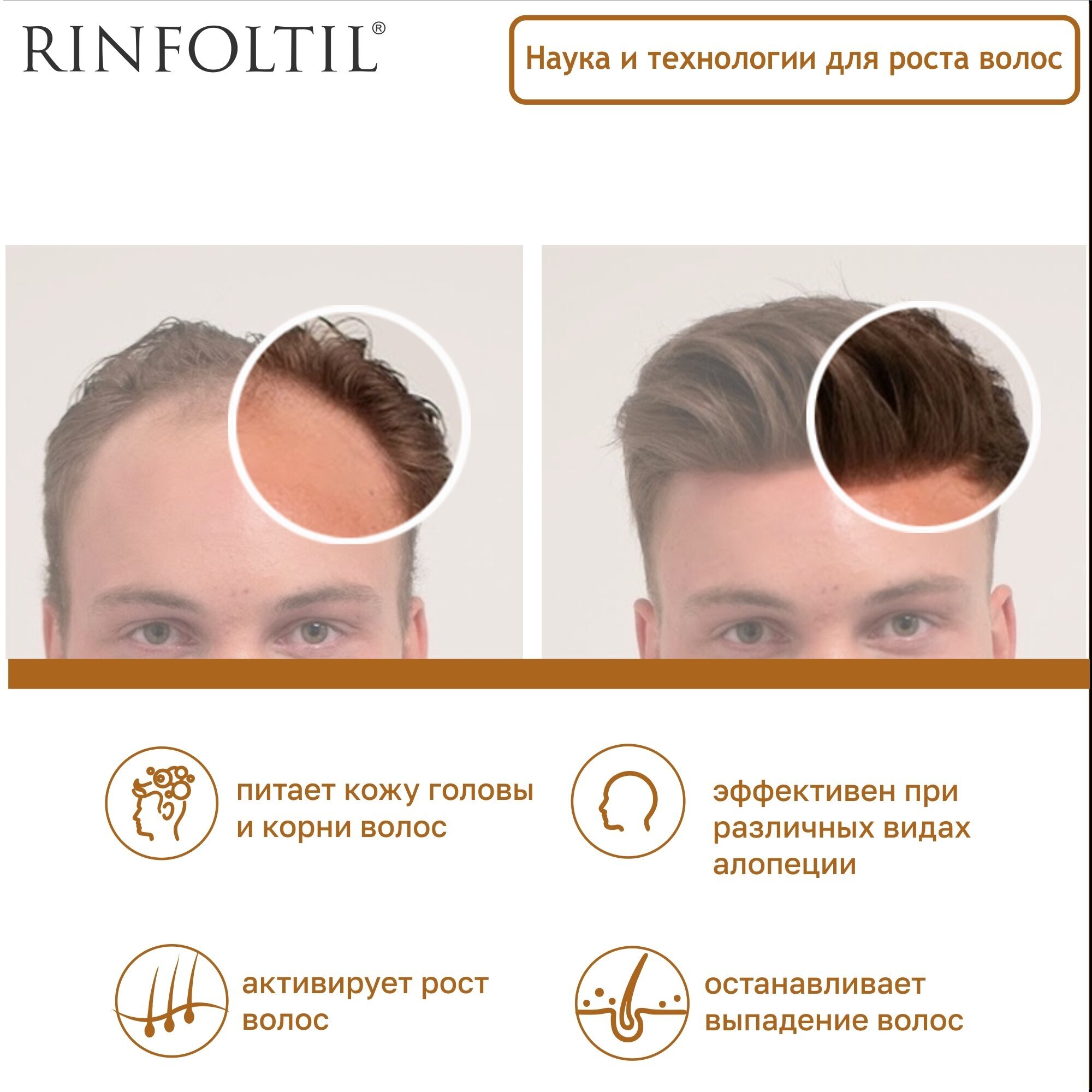 Ринфолтил® Липосомальная сыворотка против выпадения волос. Для предотвращения облысения у мужчин, 30 флаконов по 160 мг.Липосомальная сыворотка RINFOLTIL® создана на основе последних научных разработок и направлена на предотвращение выпадения волос и возобновление их роста. Сыворотка предназначена для предотвращения облысения у мужчин. Липосомы, с заключенными внутрь биологически активными компонентами, легко проходят эпидермальный барьер, проникают в глубокие слои кожи и непосредственно в волосяные фолликулы. Сыворотка работает в трех направлениях: питает кожу головы и корни волос, стимулирует волосяные фолликулы, укрепляет стержни волос. РЕЗУЛЬТАТ: сыворотка блокирует действие дигидротестостерона, останавливает повышенное выпадение волос, активирует волосяные фолликулы, увеличивает продолжительность фазы активного роста волос, показана при различных видах алопеции в моно и комплексной терапии. СПОСОБ ПРИМЕНЕНИЯ: применять ежедневно на протяжении 3-х месяцев. Равномерно нанесите сыворотку на проблемные участки кожи головы, массируйте, пока сыворотка не впитается в кожу.Для очищения кожи головы и усиления эффекта рекомендуется использовать шампуни RINFOLTIL. Флакон рассчитан на однократное применение. Наносите 1 раз в день на чистую кожу головы на протяжении 3-х месяцев. Вскройте флакон. Добавьте питьевую воду комнатной температуры до верхнего края этикетки. Наденьте дозатор на флакон. Энергично встряхните флакон до растворения таблетки. Равномерно нанесите сыворотку на проборы и проблемные участки с поредением или отсутствием волос. Массируйте, пока сыворотка не впитается в кожу. Не смывать! Уложите волосы привычным способом.