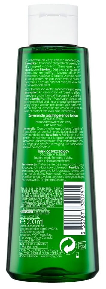 Активные компоненты: Термальная вода VICHY SPA Гликолевая кислота Салициловая кислота Спирт денатурированный Глицерин
