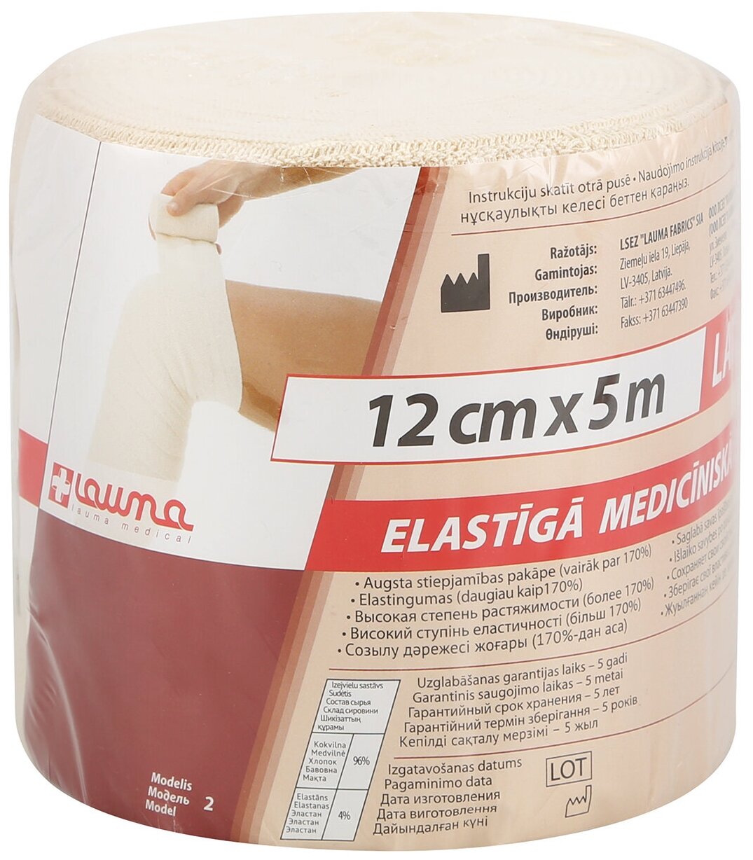 Бинт Lauma (Лаума) эластичный высокой растяжимости с застежкой 500x12 см. (572682)