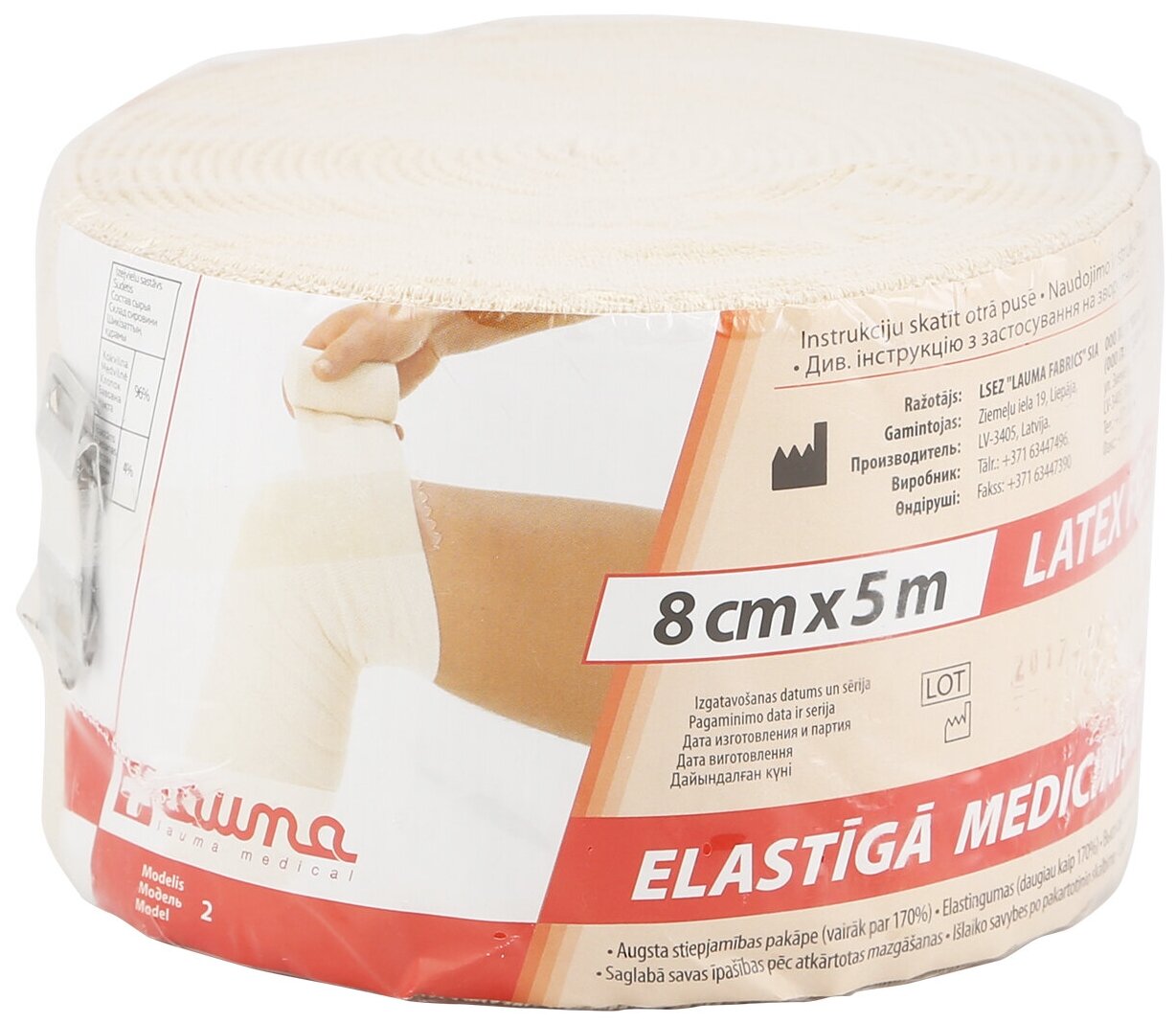 Бинт Lauma (Лаума) эластичный высокой растяжимости с застежкой 500x8 см. ООО ЛСЭЗ ЛАУМА ФАБРИКС (686747)